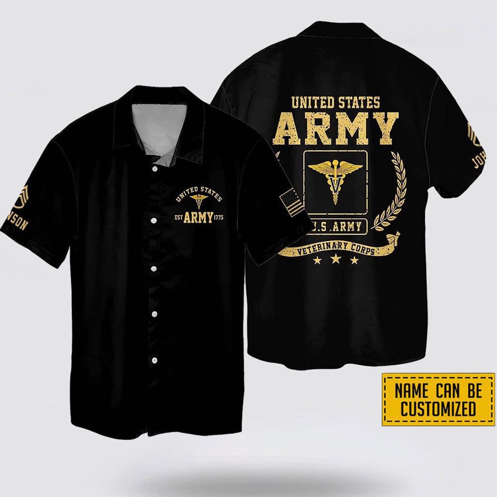 Custom Name Rank US Army Veterinary Corps EST Army 1775 Hawaiin Shirt Beachwear Gift For Military Personnel