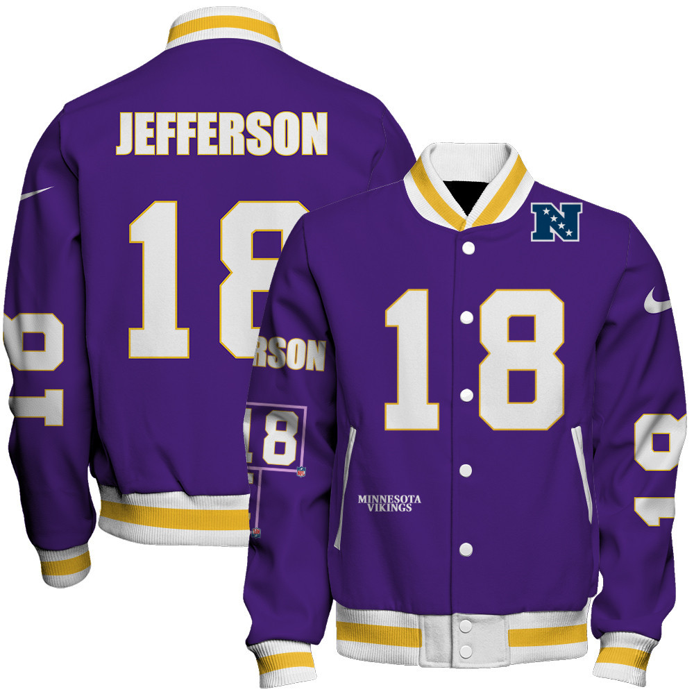 Justin Jefferson #18 Minnesota Vikings National Football League Unique Design Unisex Varsity Jacket