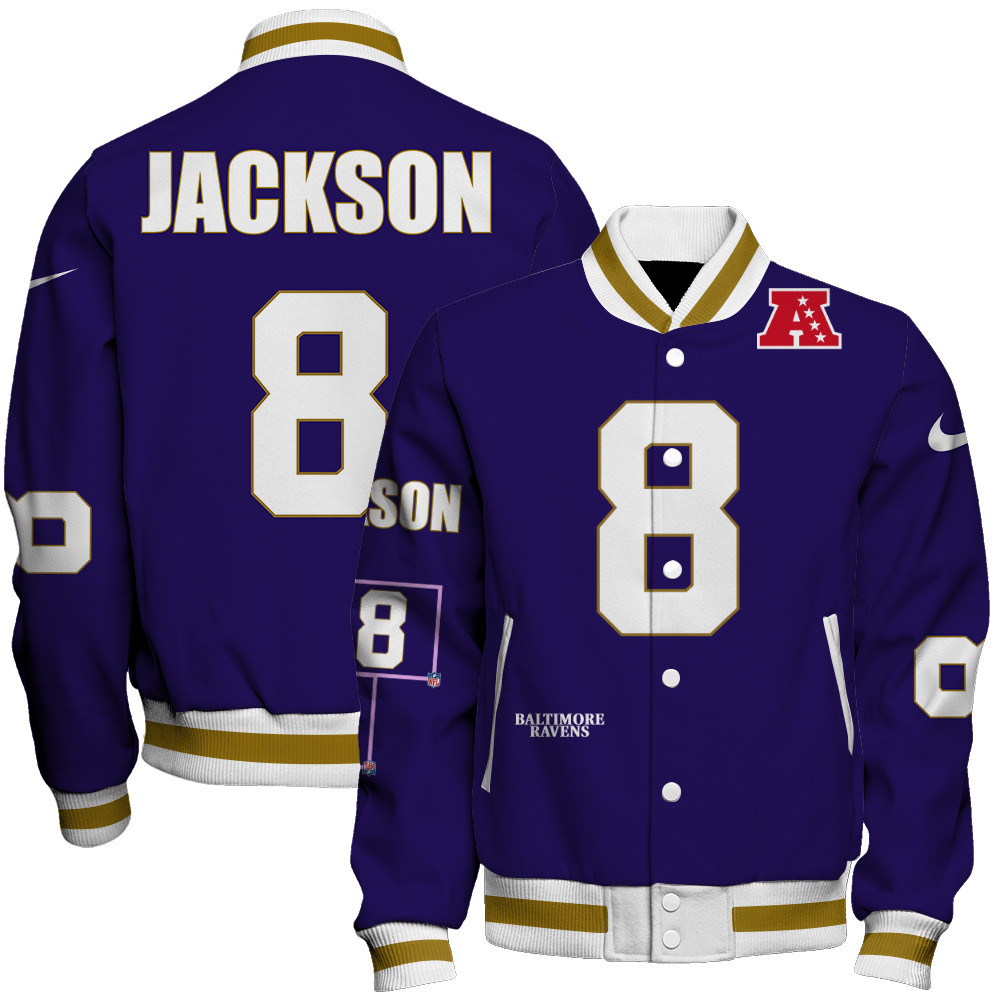 Lamar Jackson #8 Baltimore Ravens National Football League Unique Design Unisex Varsity Jacket