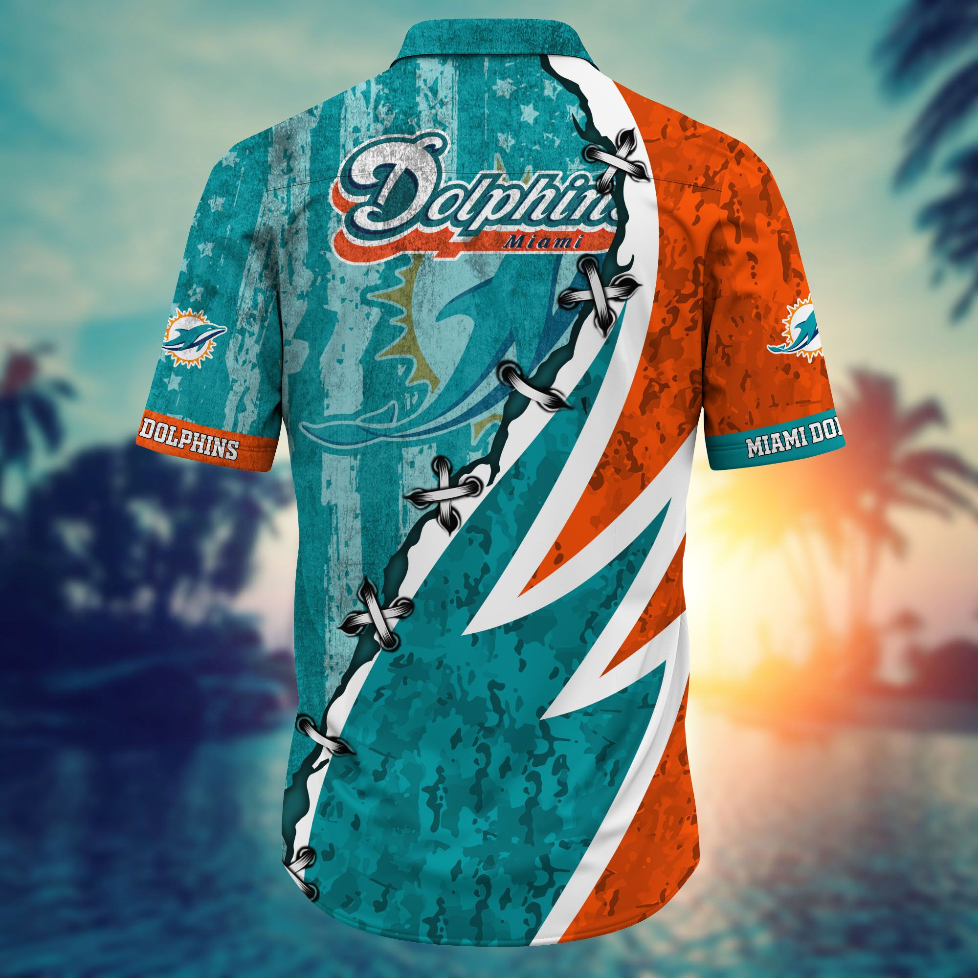 Miami Dolphins America Flag Camo Hawaiian Shirt