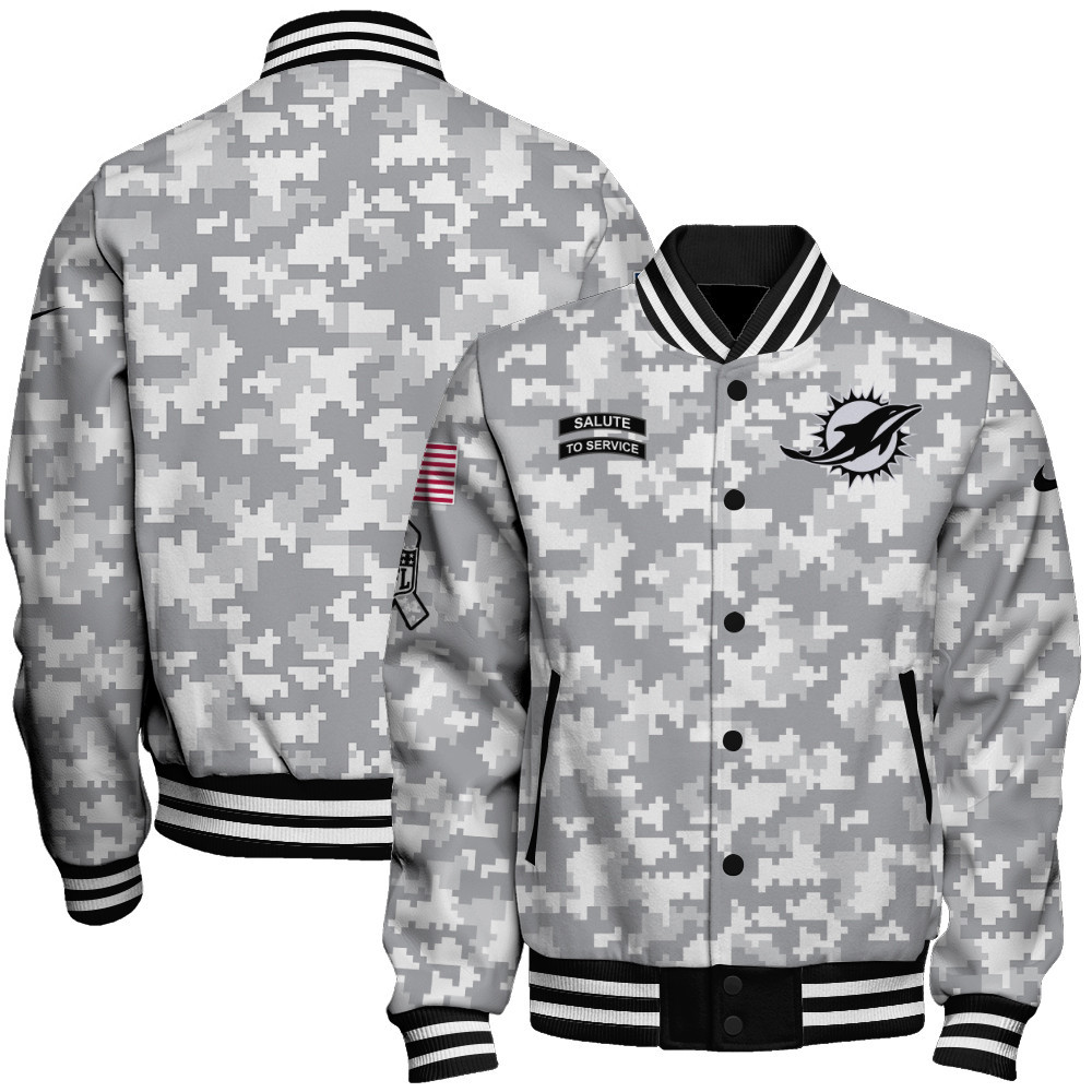 Miami Dolphins National Football League Arctic Camo Unisex Varsity Jacket