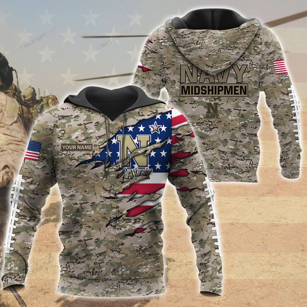 Navy Midshipmen Custom Name Camouflage Hoodie