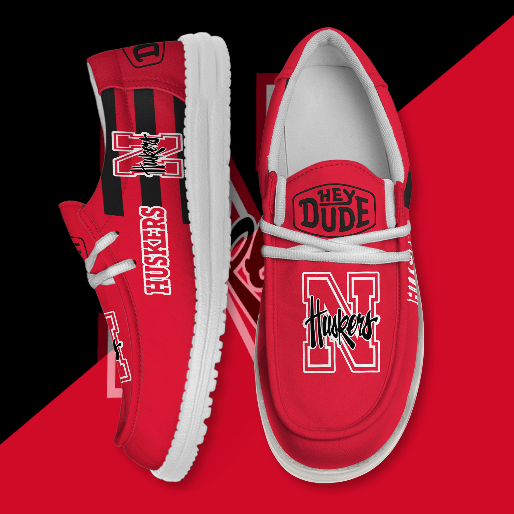 Nebraska Cornhuskers Football Hey Dude Canvas Dude Shoes Custom Name