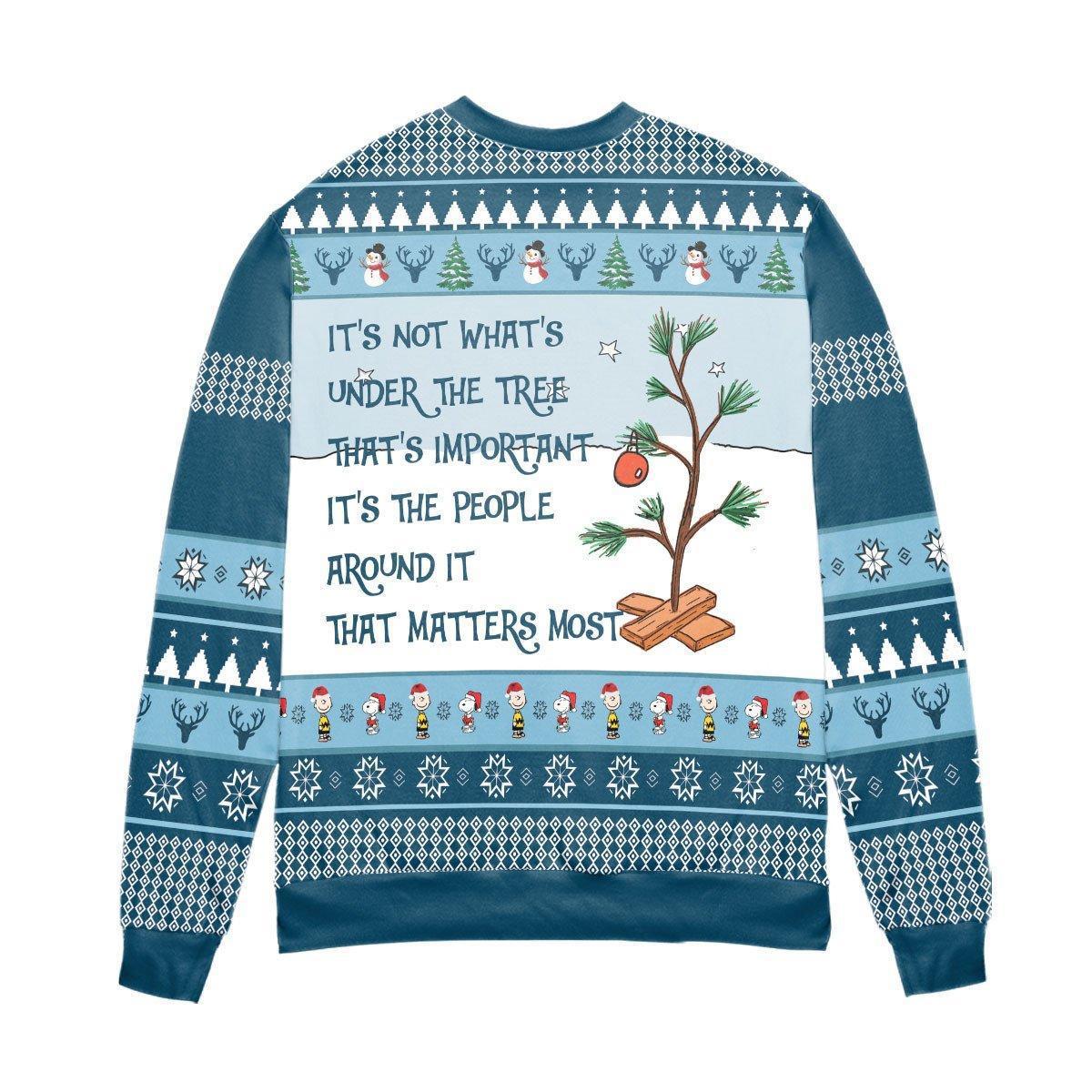 Snoopy And Charlie Brown Its Not What Under The Tree Ugly Christmas Sweater