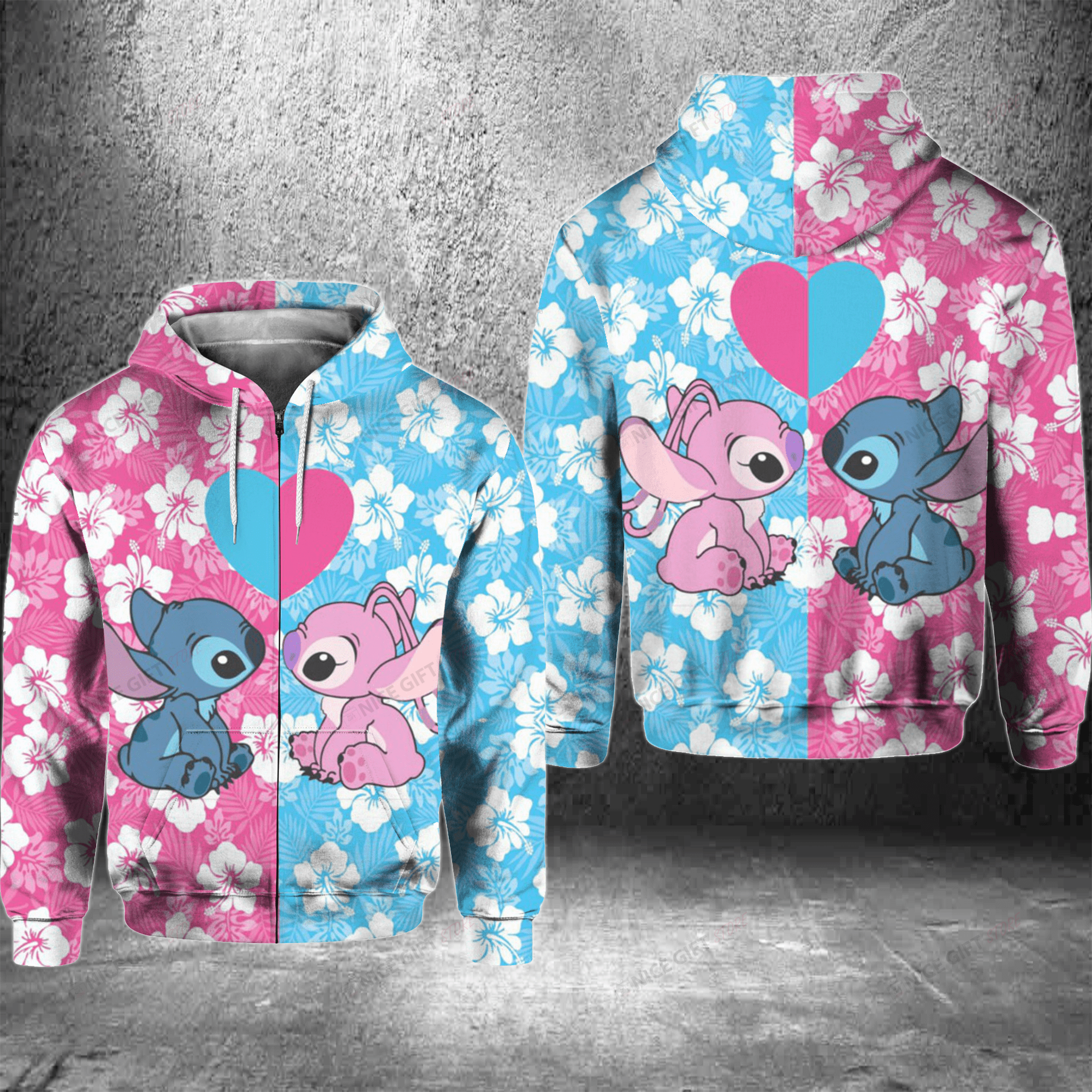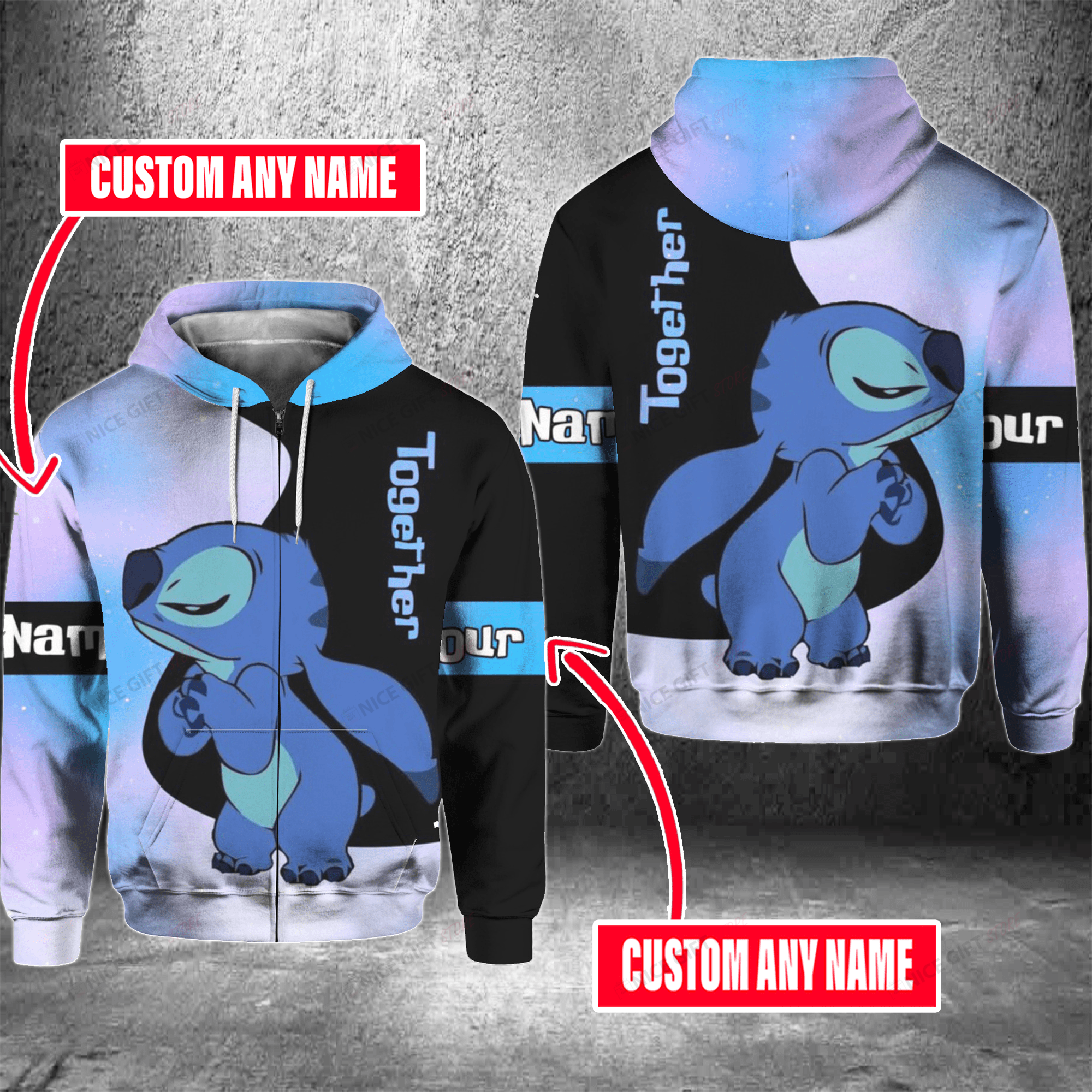 Stitch Valentines Day Together Personalized Zip Hoodie 3D