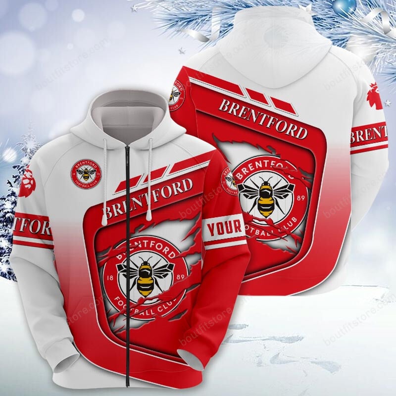 Brentford FC All Over Print Apparel Hoodie Zipper
