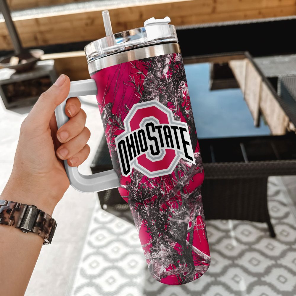 Ohio State Buckeyes Ncaa Hunting Custom Stanley Quencher 40Oz Stainless Steel Tumbler With Handle