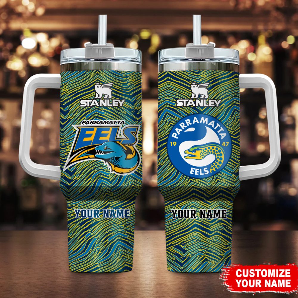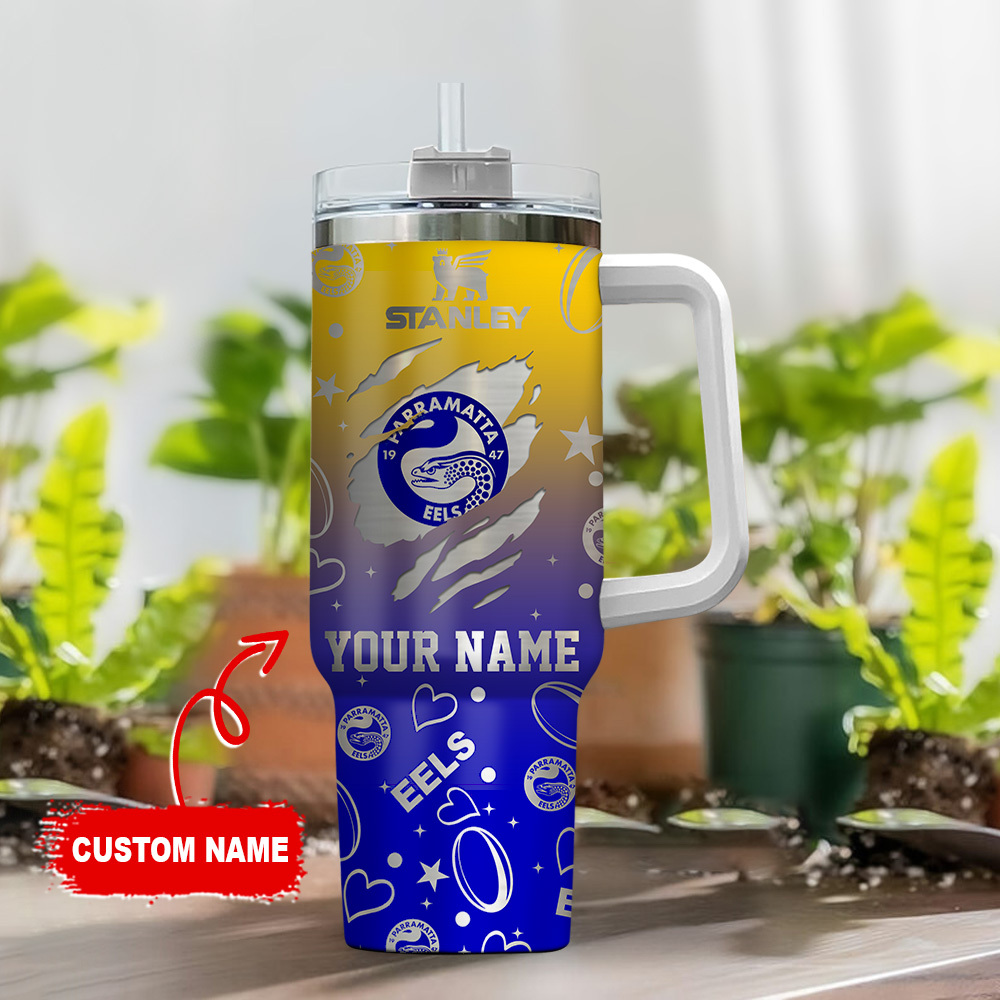 Parramatta Eels Nrl Silver Logo Custom Stanley Quencher 40Oz Stainless Steel Tumbler With Handle