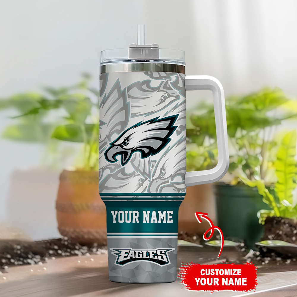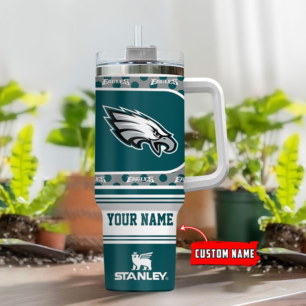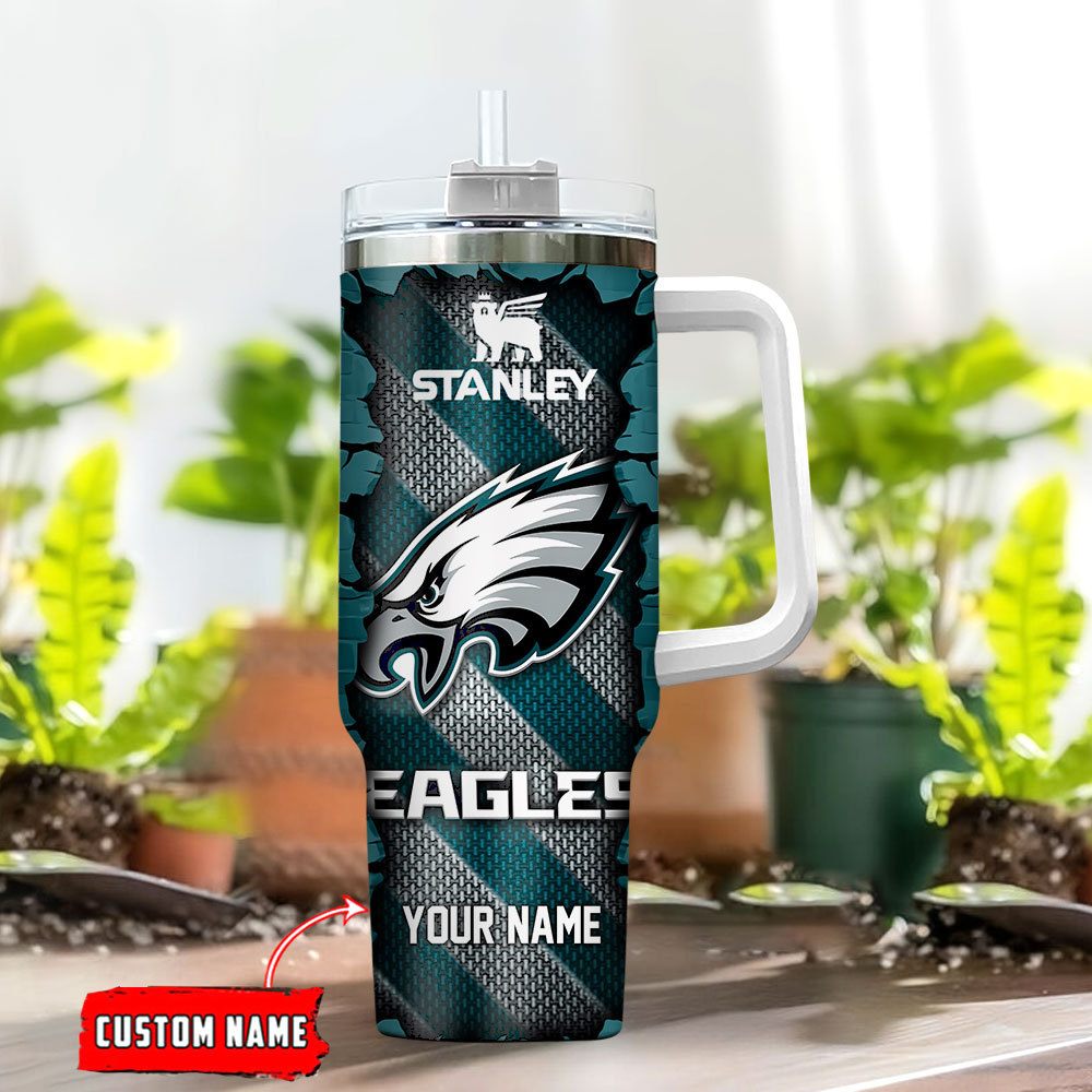 Philadelphia Eagles Nfl Custom Stanley Quencher 40Oz Stainless Steel Tumbler With Handle