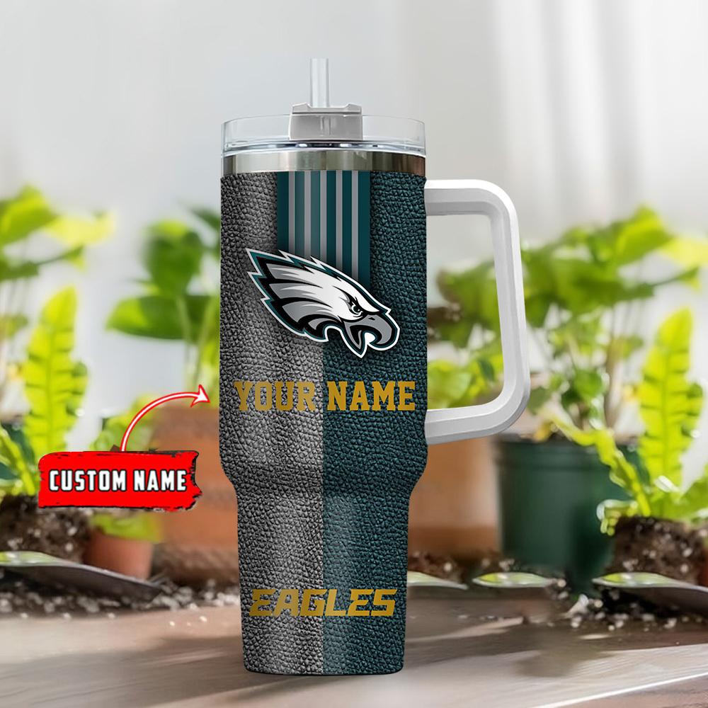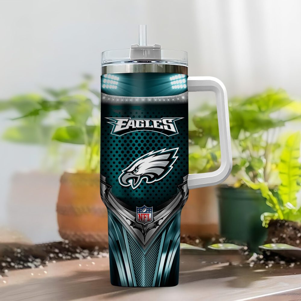 Philadelphia Eagles Nfl Metal Style Custom Stanley Quencher 40Oz Stainless Steel Tumbler With Handle
