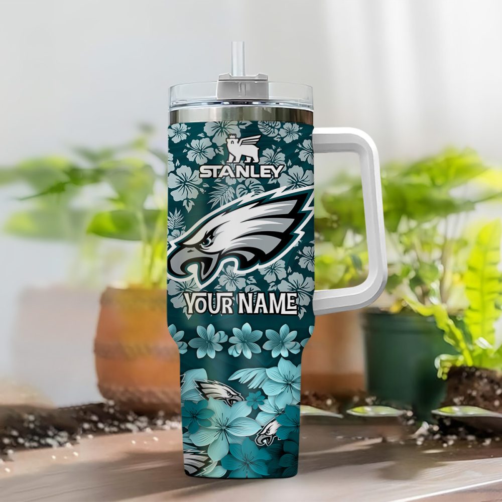 Philadelphia Eagles Nfl Tropical Floral Custom Stanley Quencher 40Oz Stainless Steel