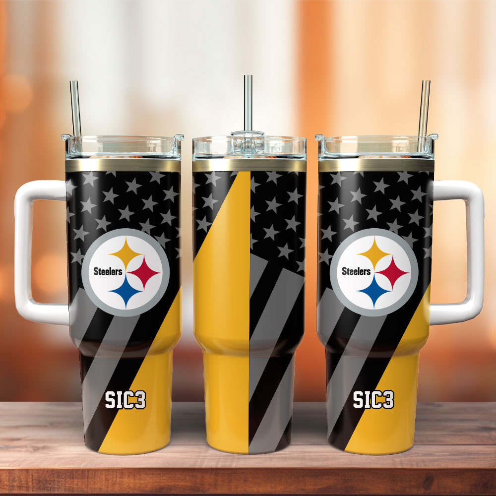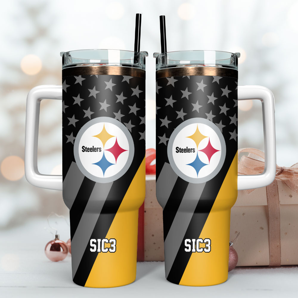 Pittsburgh Steelers Football Nfl Custom Stanley Quencher 40Oz Stainless Steel Tumbler With Handle