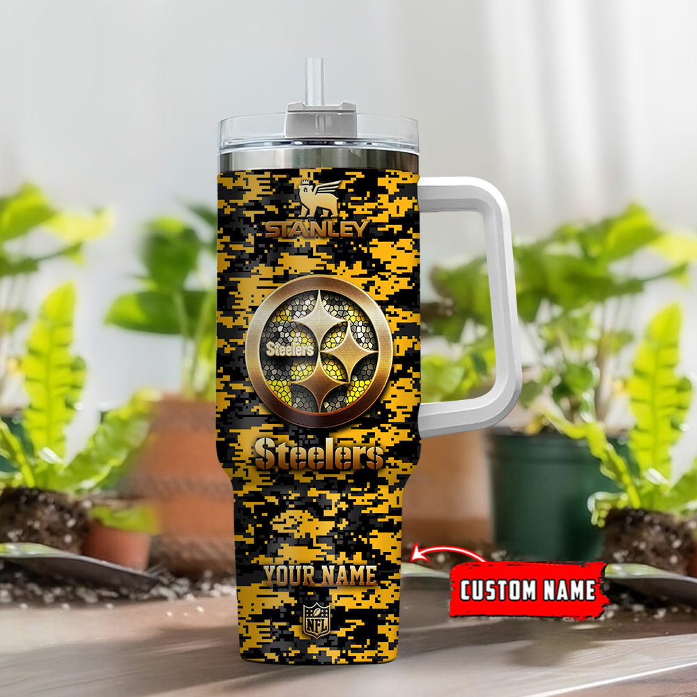 Pittsburgh Steelers Nfl Camo Pattern Custom Stanley Quencher 40Oz Stainless Steel Tumbler With Handle