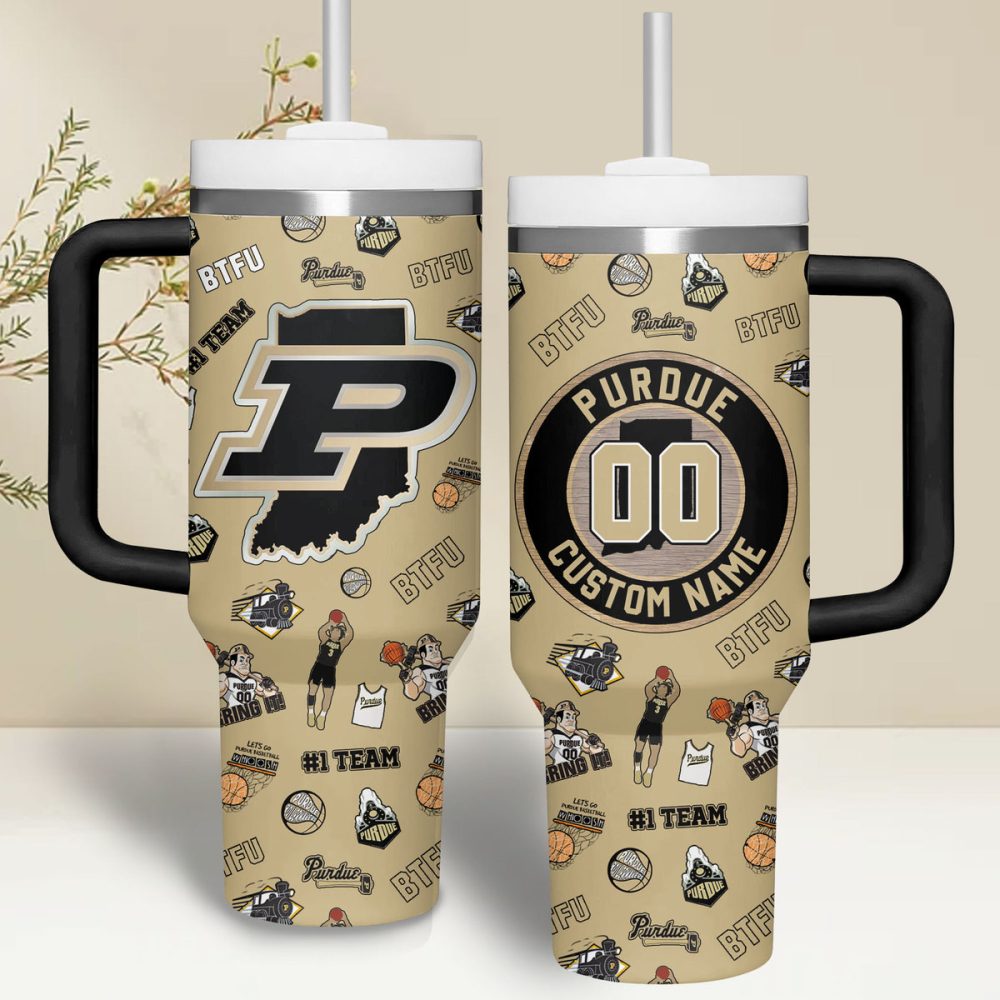 Purdue Boilermakers Basketball Ncaa Custom Stanley Quencher 40Oz Stainless Steel Beige