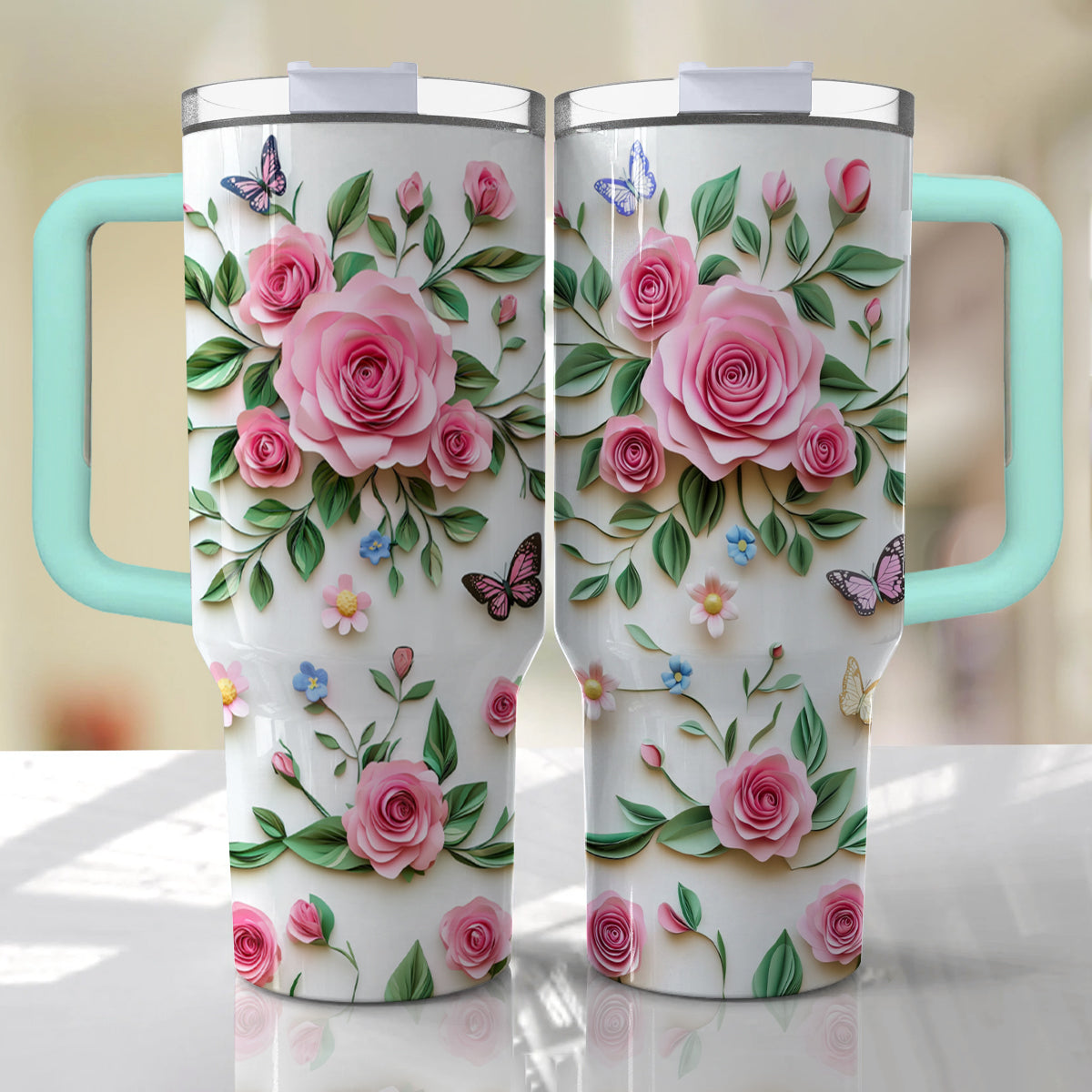 Rose Flower Custom Stanley Cup 40 oz Tumbler With Handle