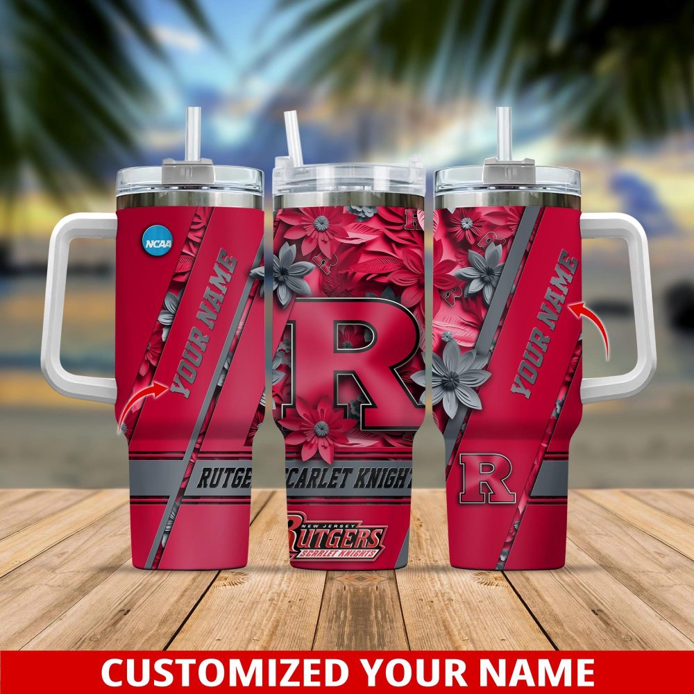 Rutgers Scarlet Knights Ncaa Custom Stanley Quencher 40Oz Stainless Steel Tumbler With Handle