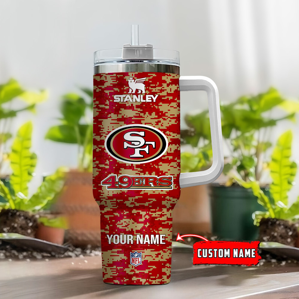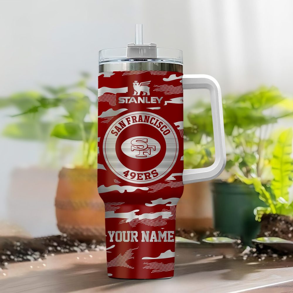 San Francisco 49Ers Nfl Camouflage Custom Stanley Quencher 40Oz Stainless Steel Tumbler With Handle