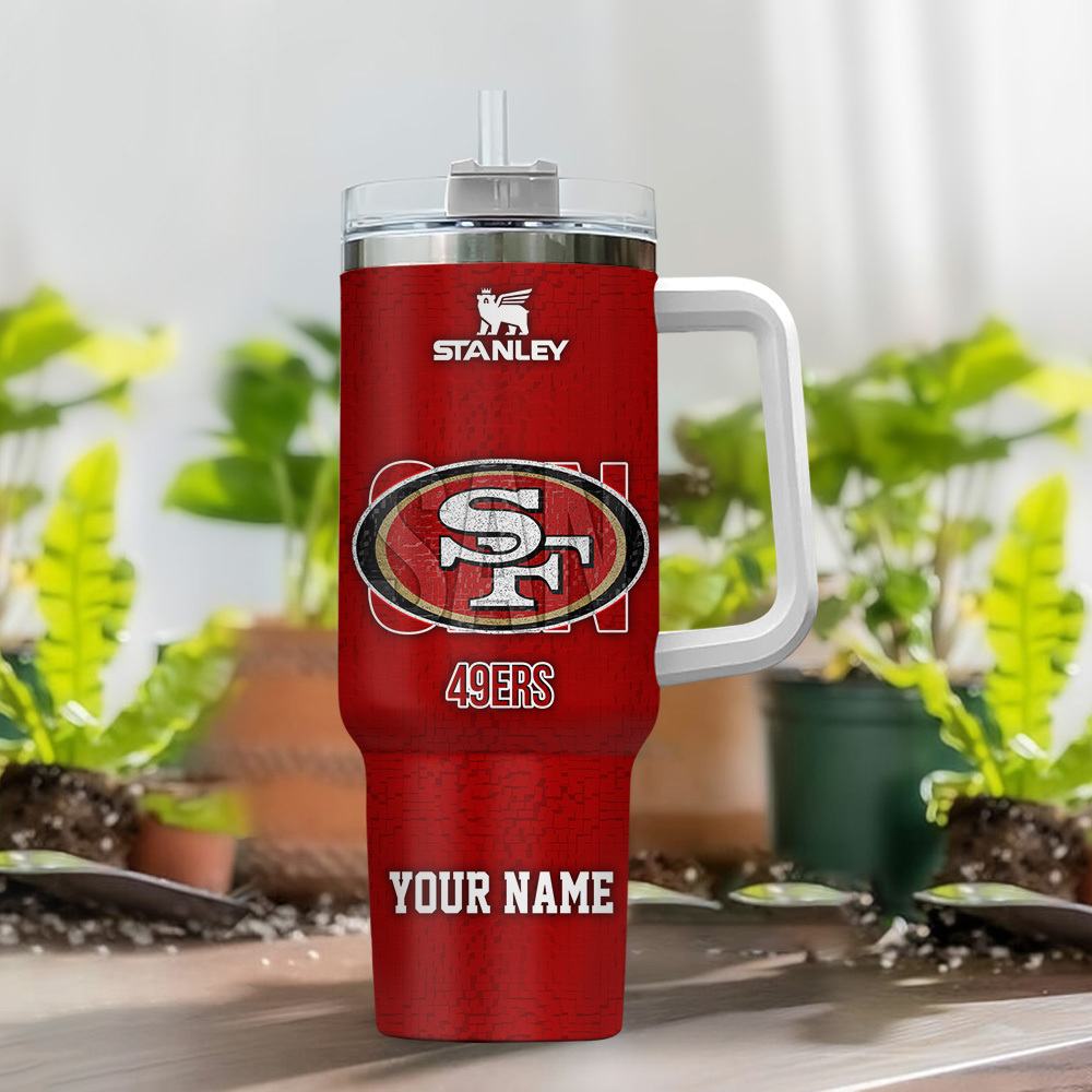 San Francisco 49Ers Nfl 3D Logo Custom Stanley Quencher 40Oz Stainless Steel Tumbler With Handle
