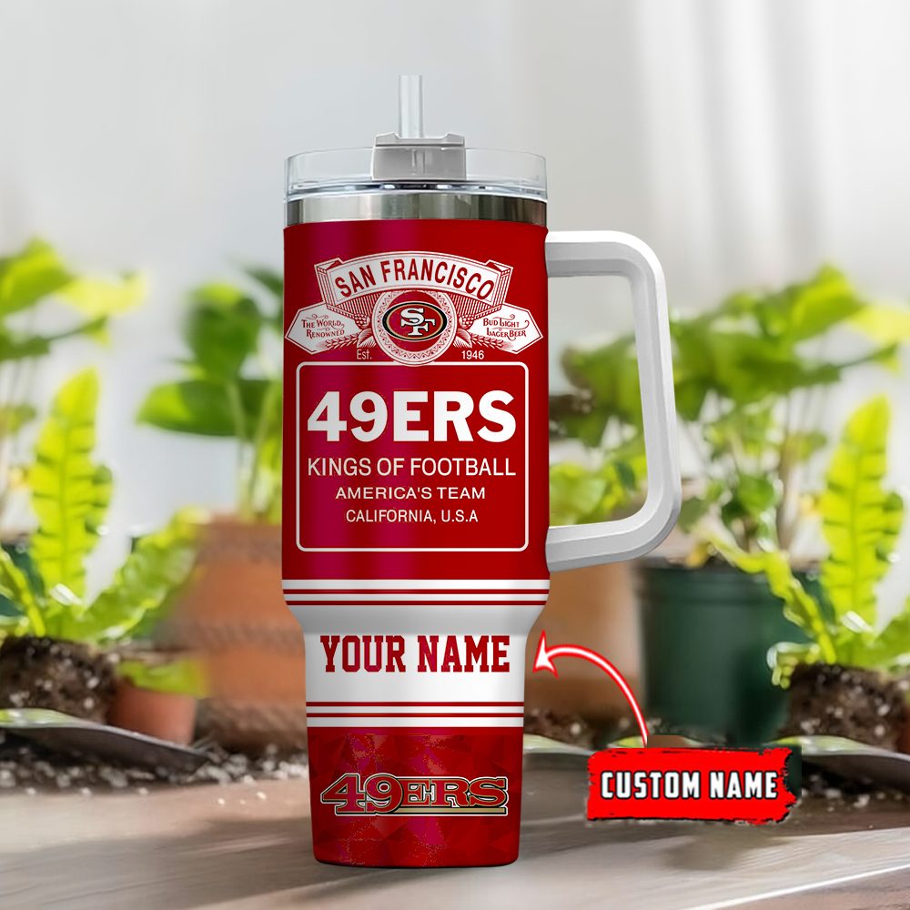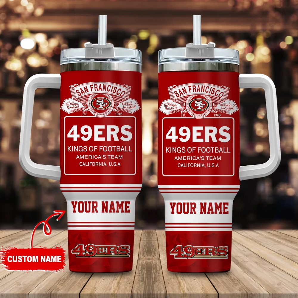 San Francisco 49Ers Nfl Bud Light Custom Stanley Quencher 40Oz Stainless Steel Tumbler With Handle