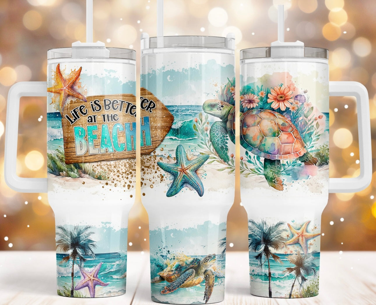 Sea Turtle Summer Vibes Custom Stanley Cup 40 oz Tumbler With Handle