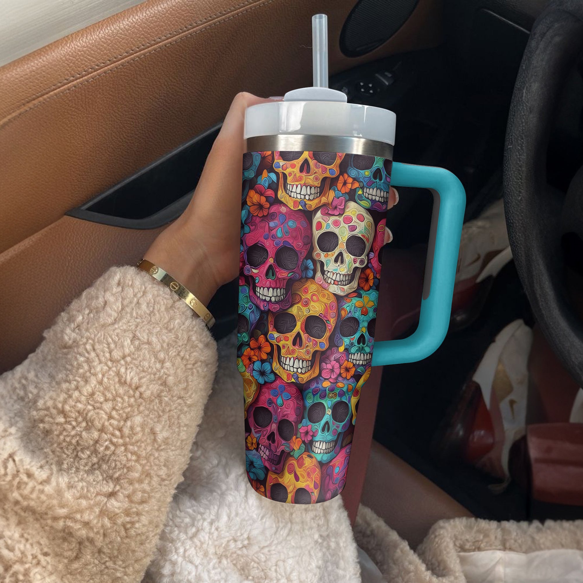 Skull Colorful Custom Stanley Cup 40 oz Tumbler With Handle