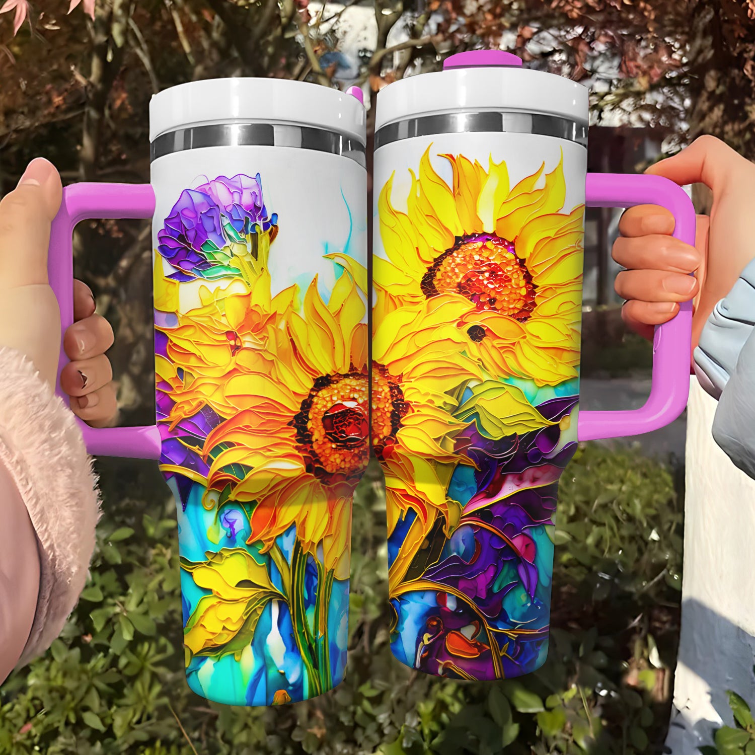 Sparkling Sunflowers Custom Stanley Cup 40 oz Tumbler With Handle