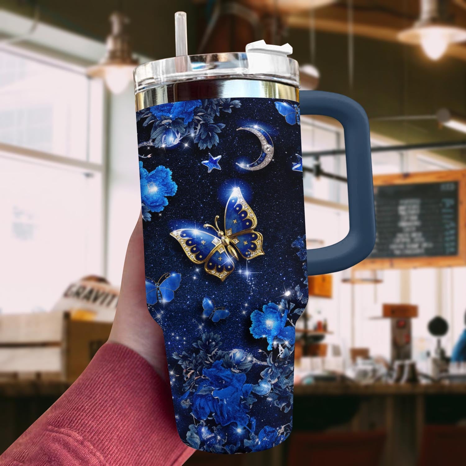 Sparkling Night Butterfly Custom Stanley Cup 40 oz Tumbler With Handle