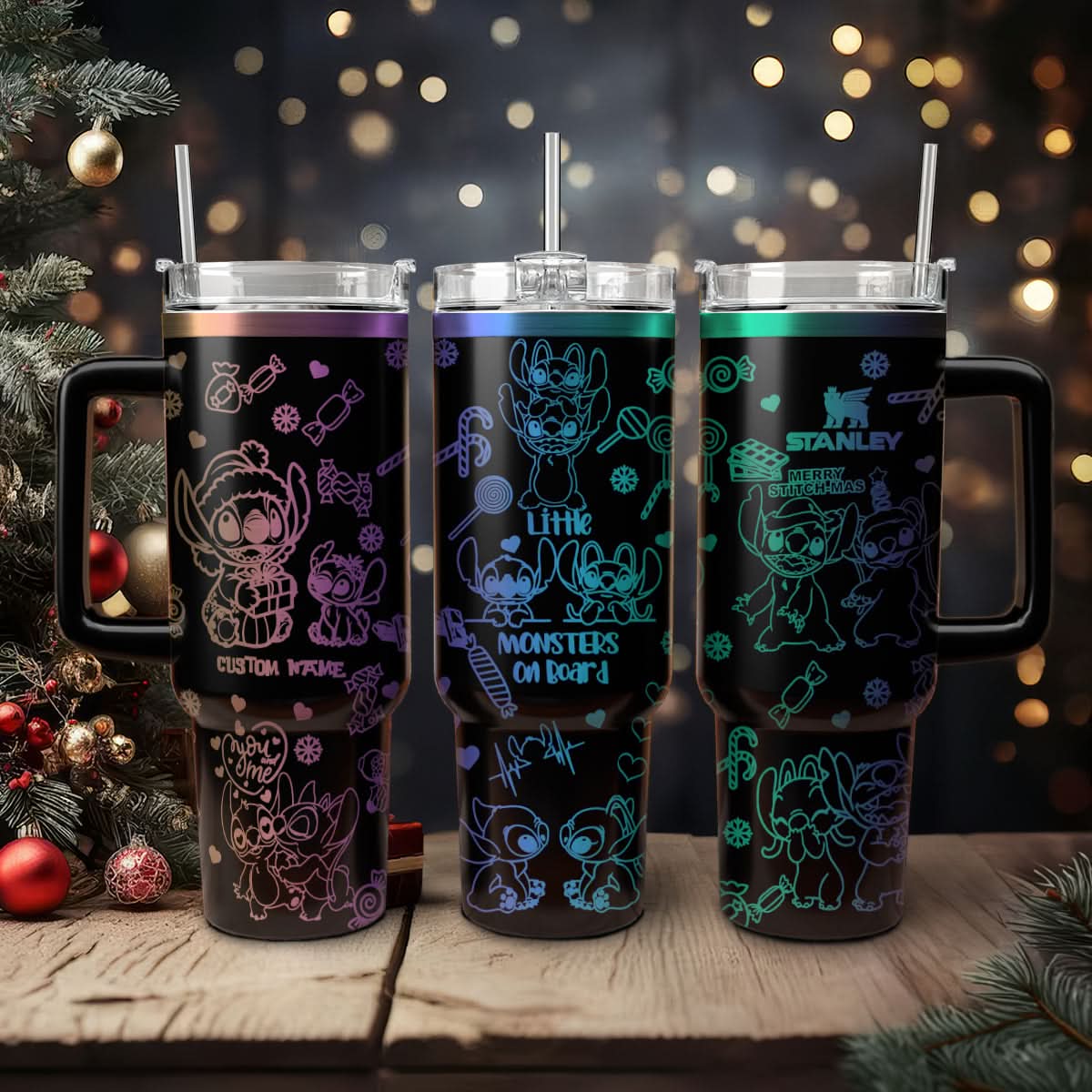 Stitch Cartoon Christmas Custom Stanley Cup 40 oz Tumbler With Handle