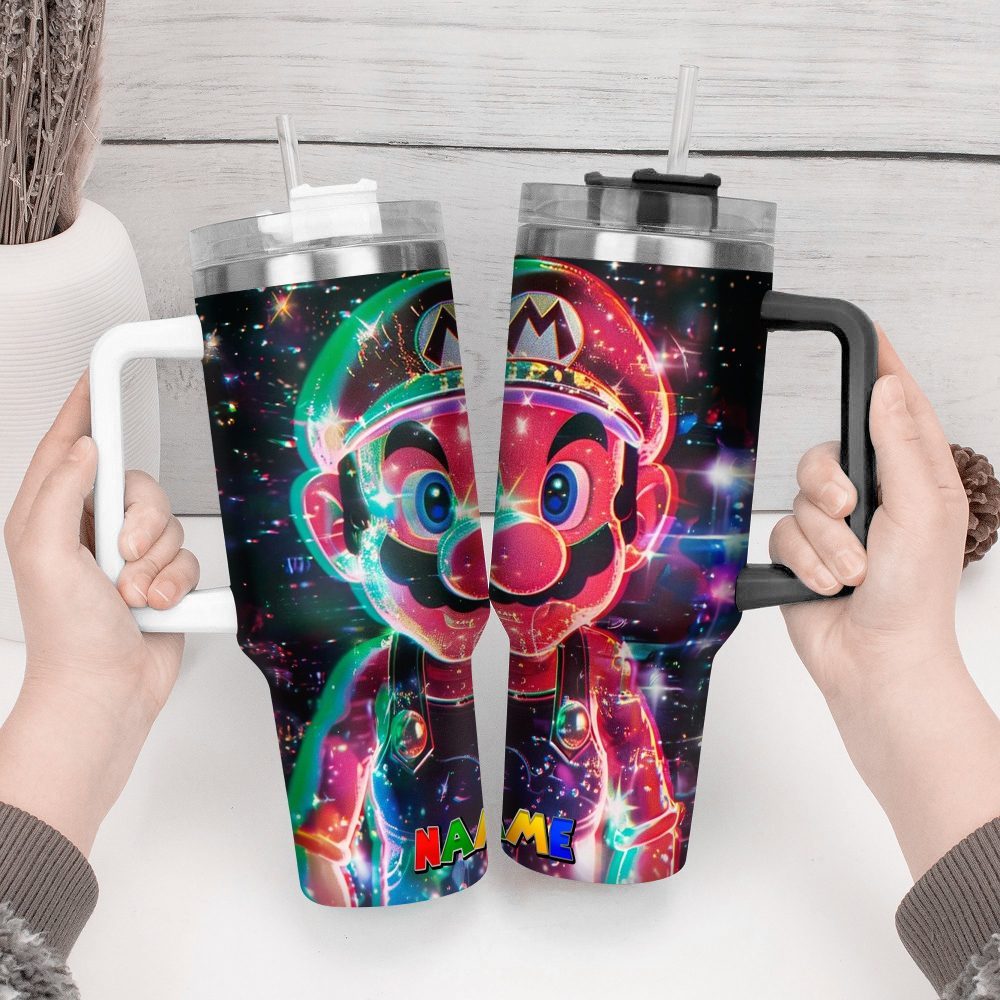 Super Mario Games Custom Stanley Quencher 40Oz Stainless Steel Tumbler With Handle