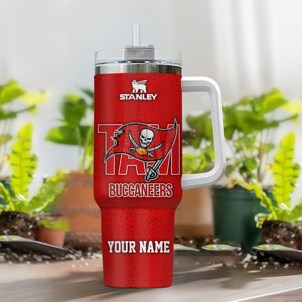 Tampa Bay Buccaneers Nfl 3D Logo Custom Stanley Quencher 40Oz Stainless Steel Tumbler With Handle
