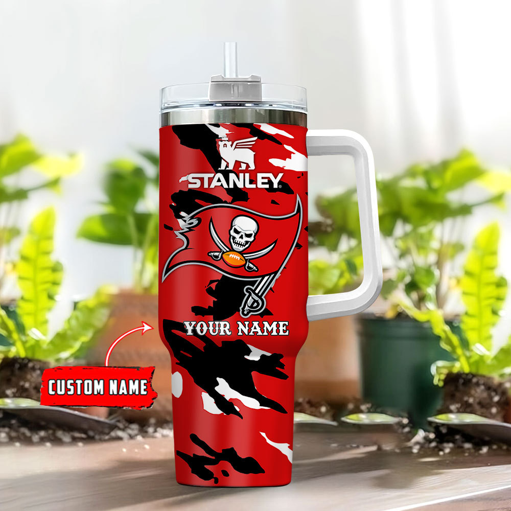 Tampa Bay Buccaneers Nfl Custom Stanley Quencher 40Oz Stainless Steel Tumbler With Handle