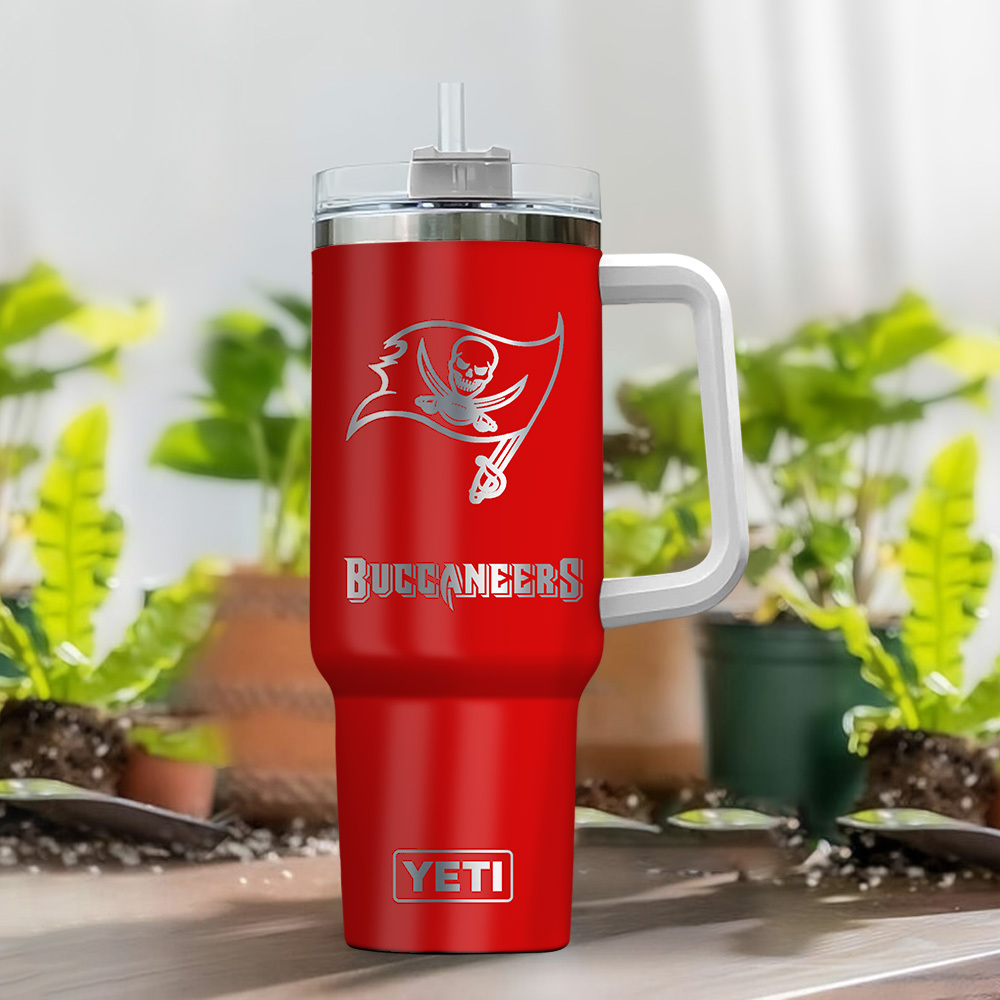 Tampa Bay Buccaneers Nfl Laser Engraved Effect Custom Stanley Quencher 40Oz Stainless Steel Tumbler With Handle