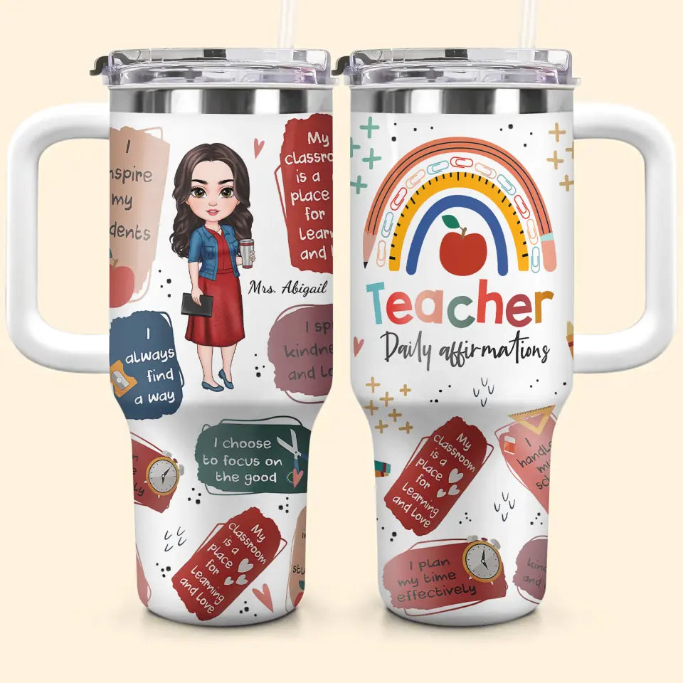 Teacher Daily Affirmations Custom Stanley Cup 40 oz Tumbler With Handle