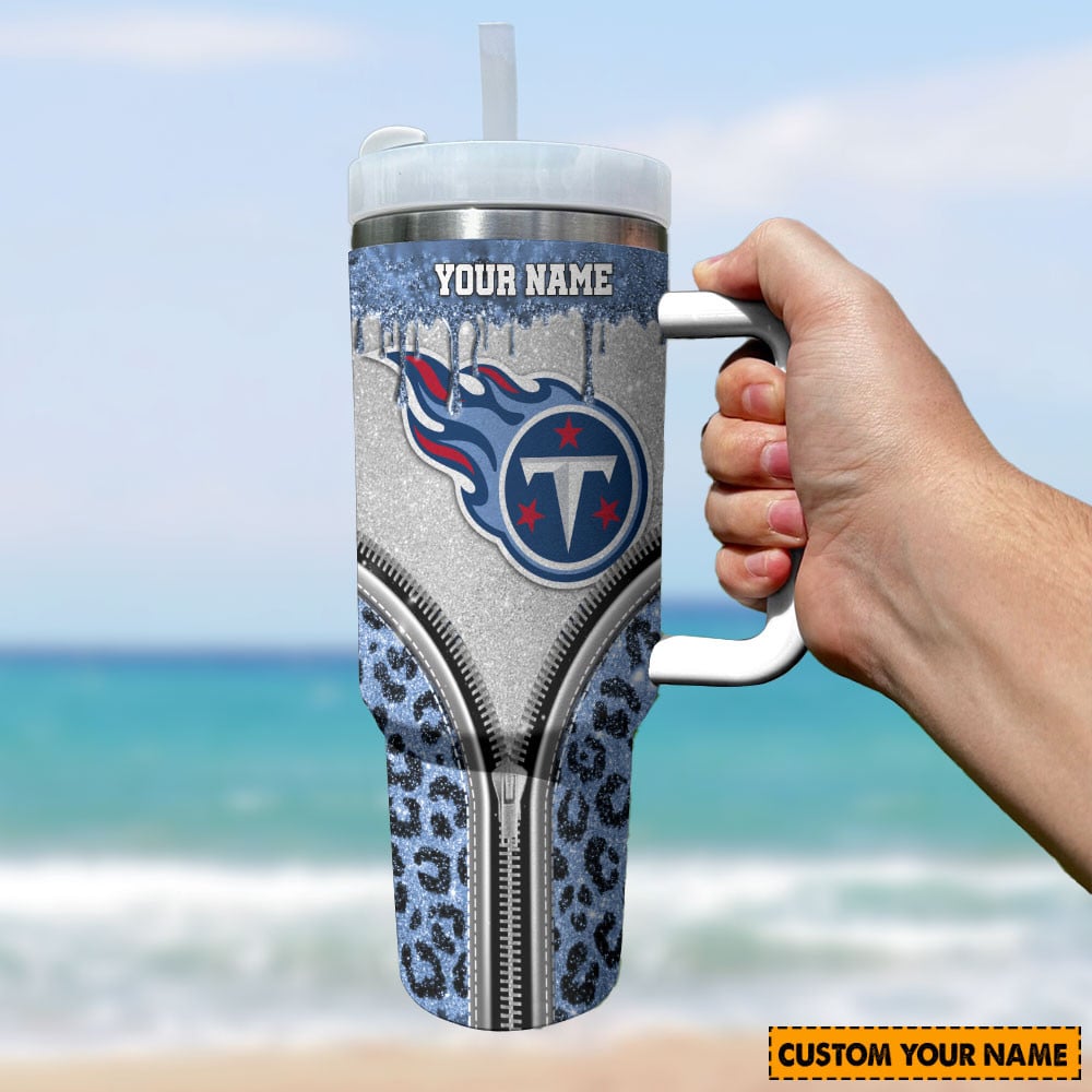Tennessee Titans Nfl Glitter Leopard Print Custom Stanley Quencher 40Oz Stainless Steel Tumbler With Handle