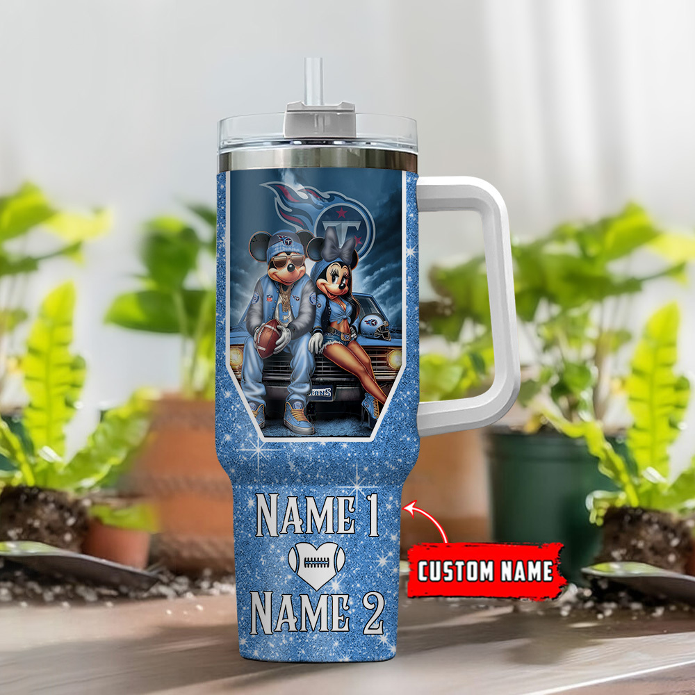 Tennessee Titans Nfl Mickey And Minnie Couple Custom Stanley Quencher 40Oz Stainless Steel Tumbler With Handle