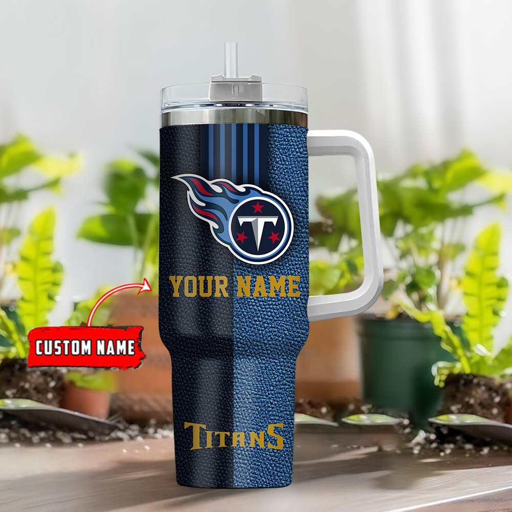 Tennessee Titans Nfl Leather Effect Custom Stanley Quencher 40Oz Stainless Steel Tumbler With Handle