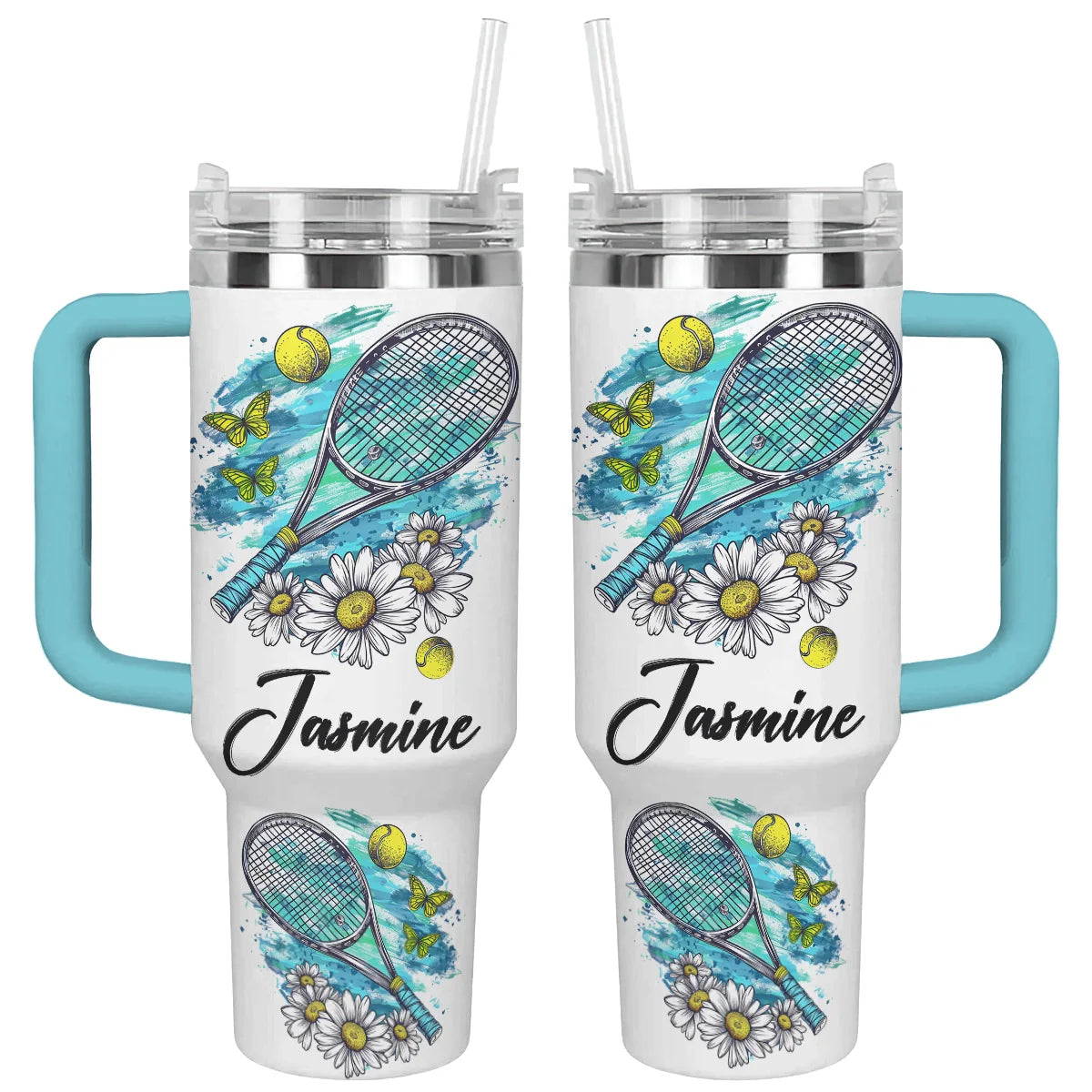 Tennis Artwork Custom Stanley Quencher 40Oz Stainless Steel Tumbler With Handle