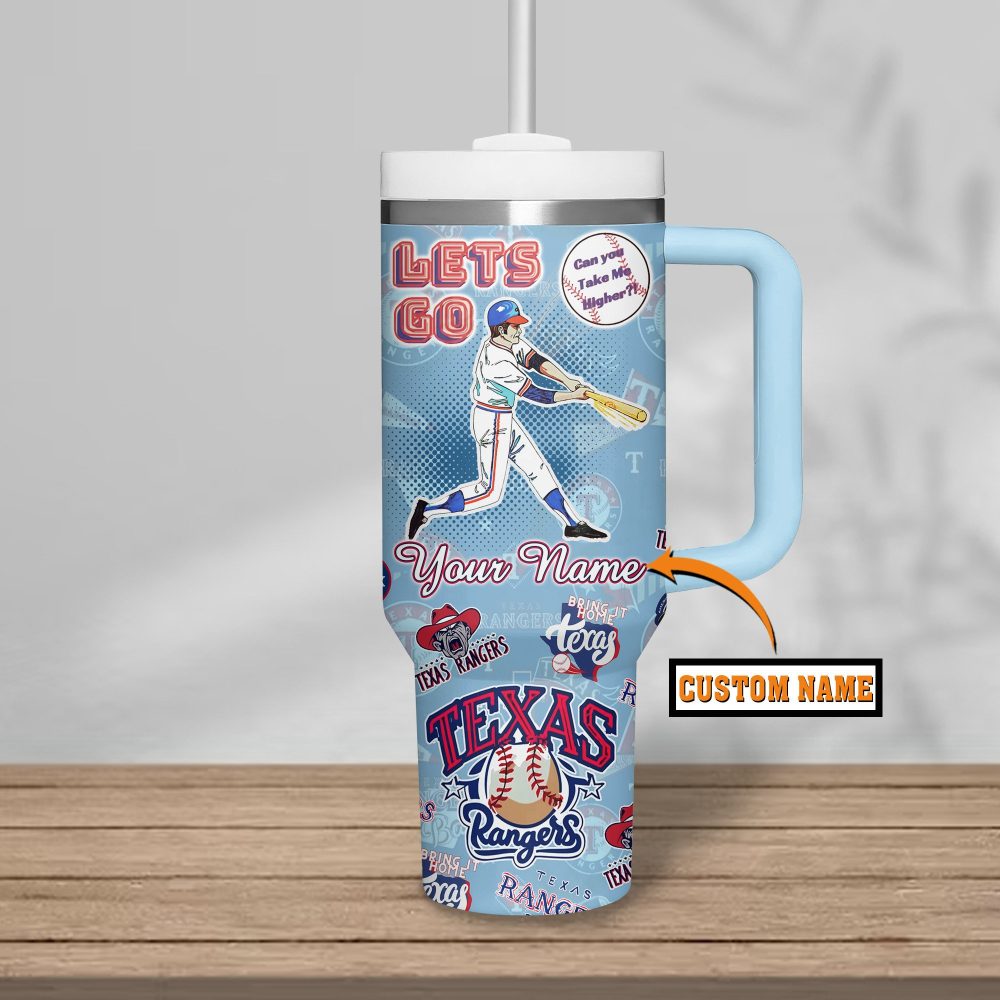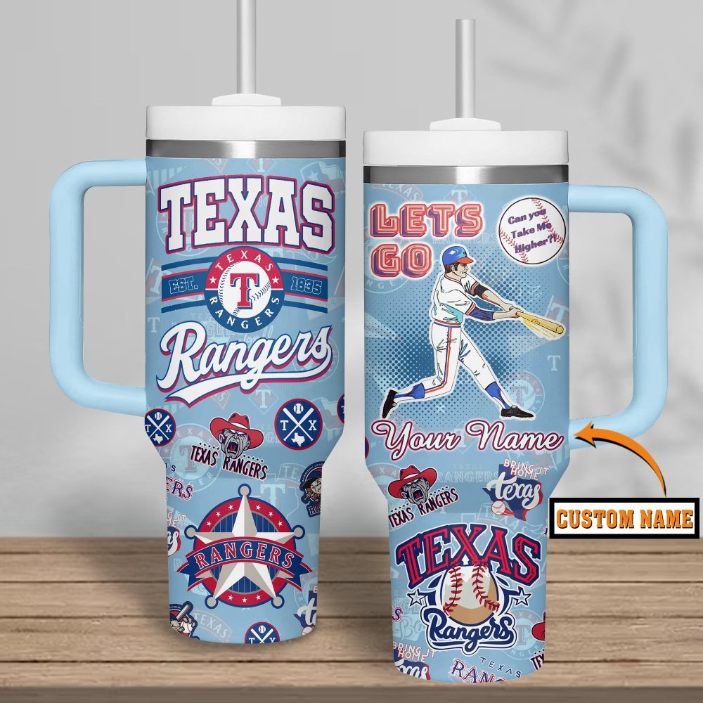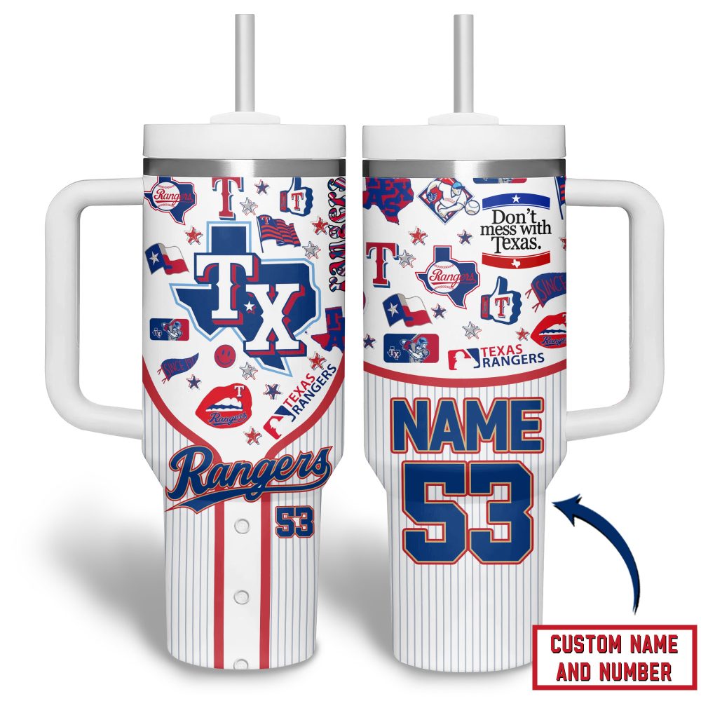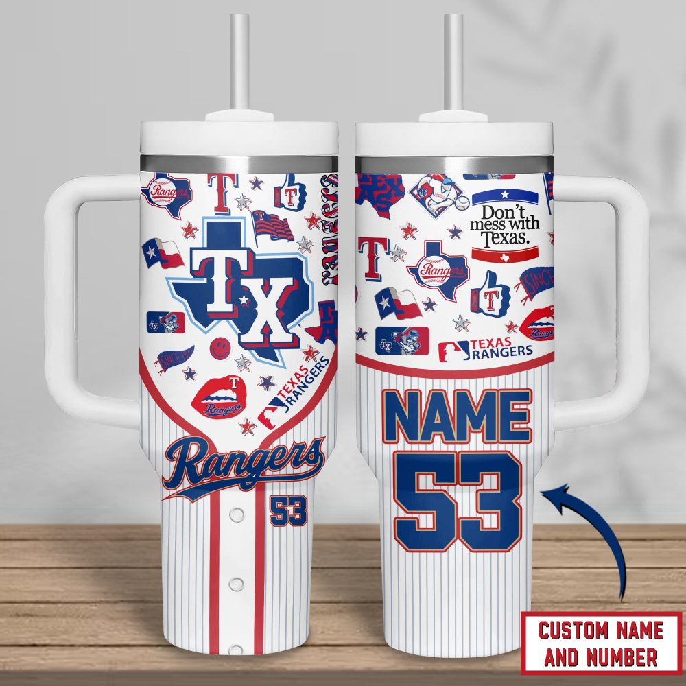 Texas Rangers Mlb Custom Stanley Quencher 40Oz Stainless Steel Tumbler