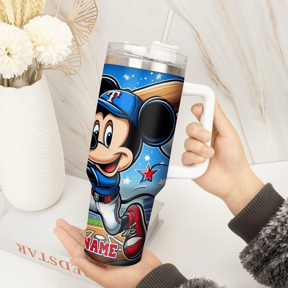 Texas Rangers Mlb Custom Stanley Quencher 40Oz Stainless Steel Tumbler With Handle