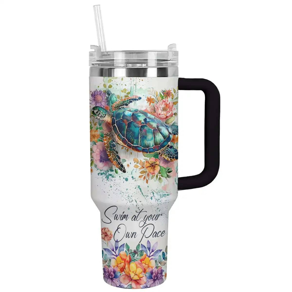 Turtle Custom Stanley Cup 40 oz Tumbler With Handle