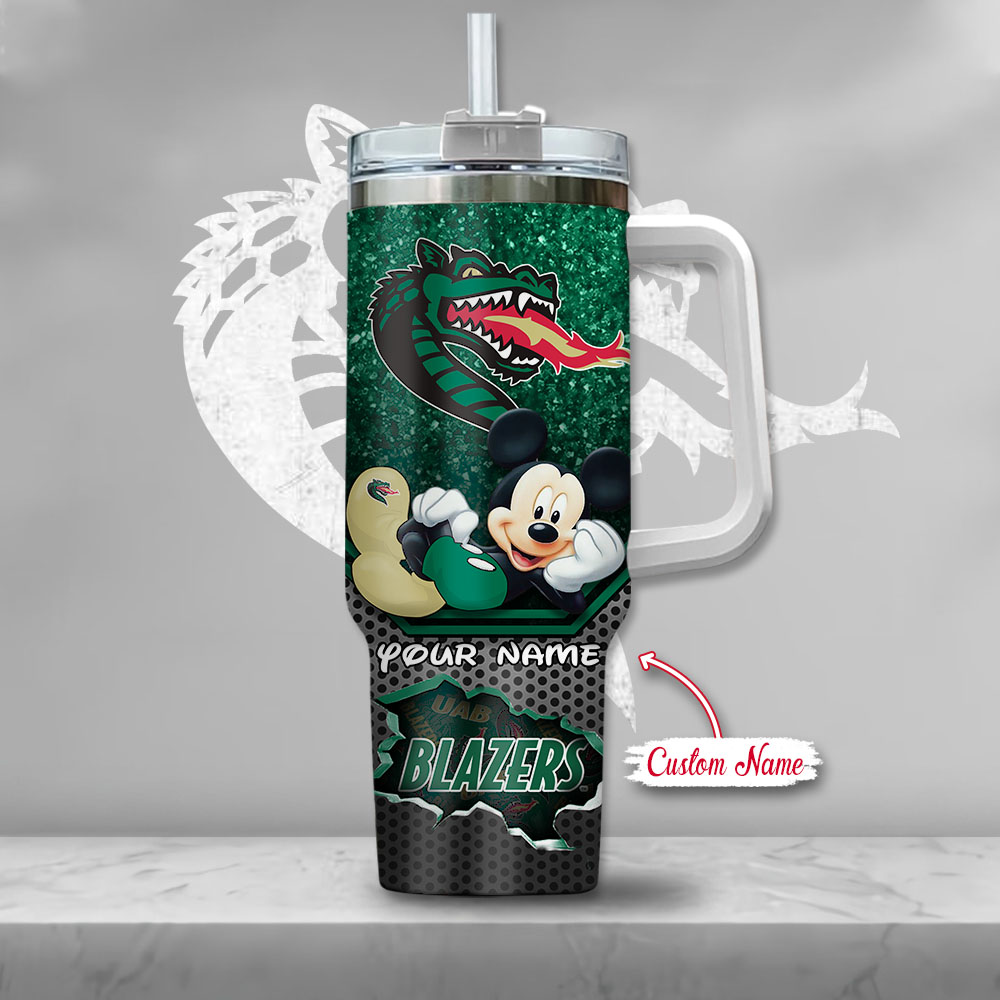 Uab Blazers Ncaa Mickey Mouse Custom Stanley Quencher 40Oz Stainless Steel Tumbler With Handle