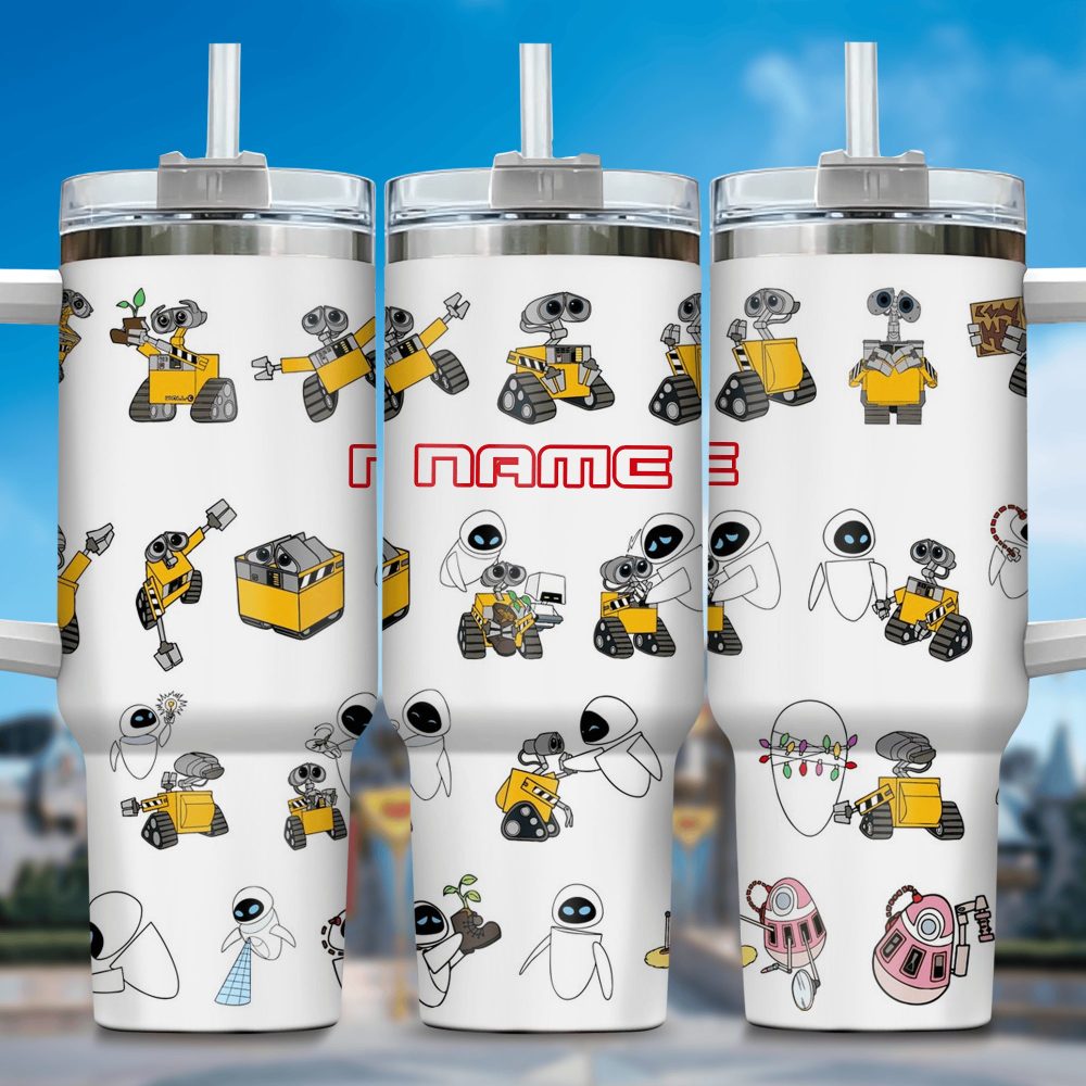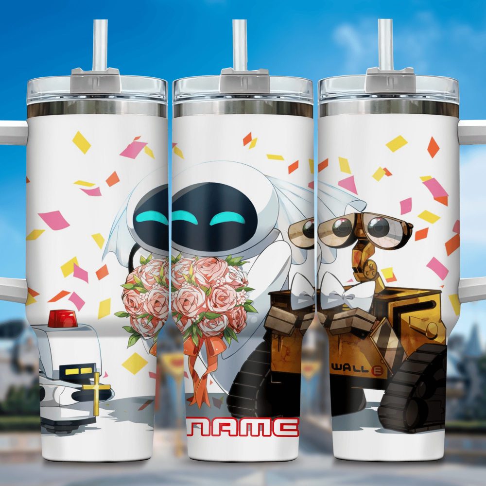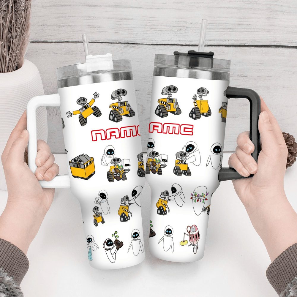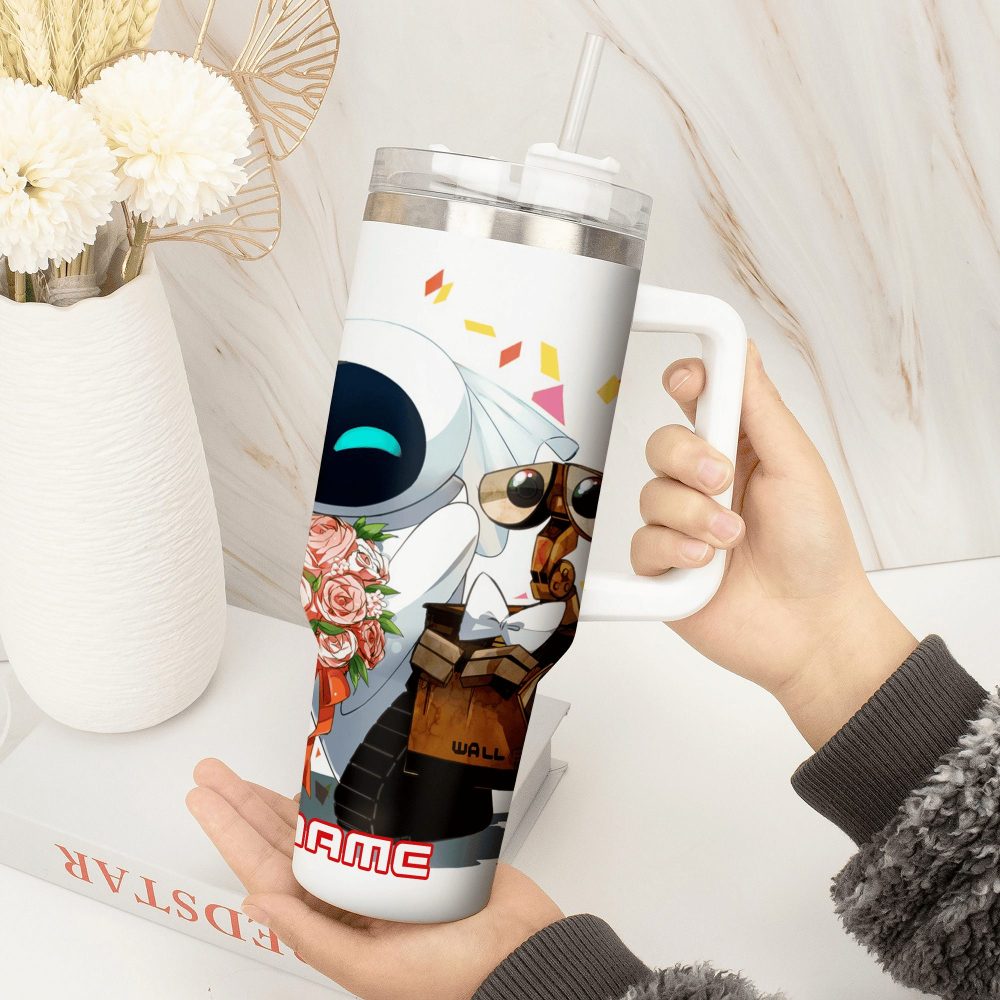 Wall E And Eve Movies Custom Stanley Quencher 40Oz Stainless Steel Tumbler With Handle