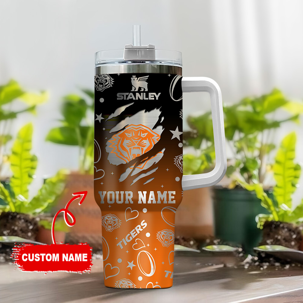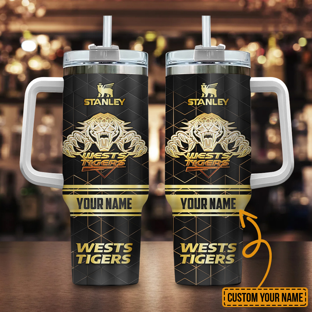 Wests Tigers Nrl Golden Logo Custom Stanley Quencher 40Oz Stainless Steel Tumbler With Handle