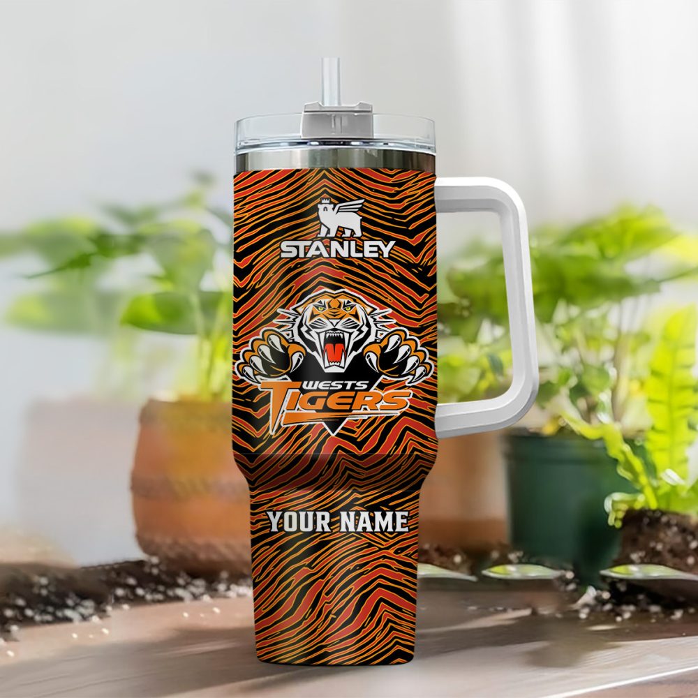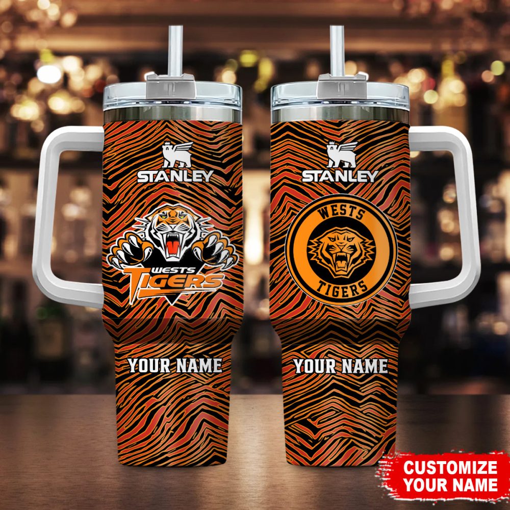 Wests Tigers Nrl Silver Logo Custom Stanley Quencher 40Oz Stainless Steel Tumbler With Handle