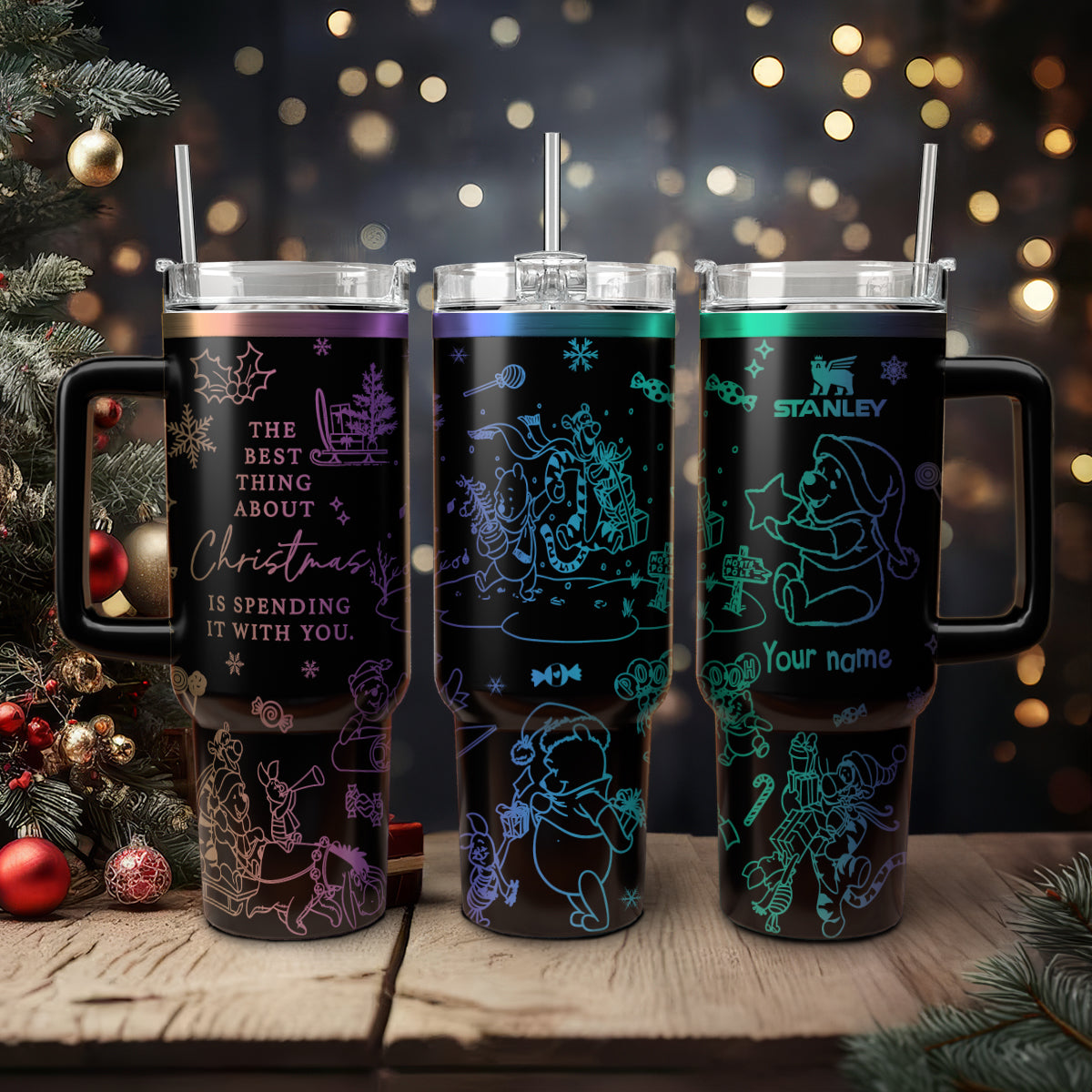 Winnie The Pooh Cartoon Christmas Custom Stanley Cup 40 oz Tumbler With Handle