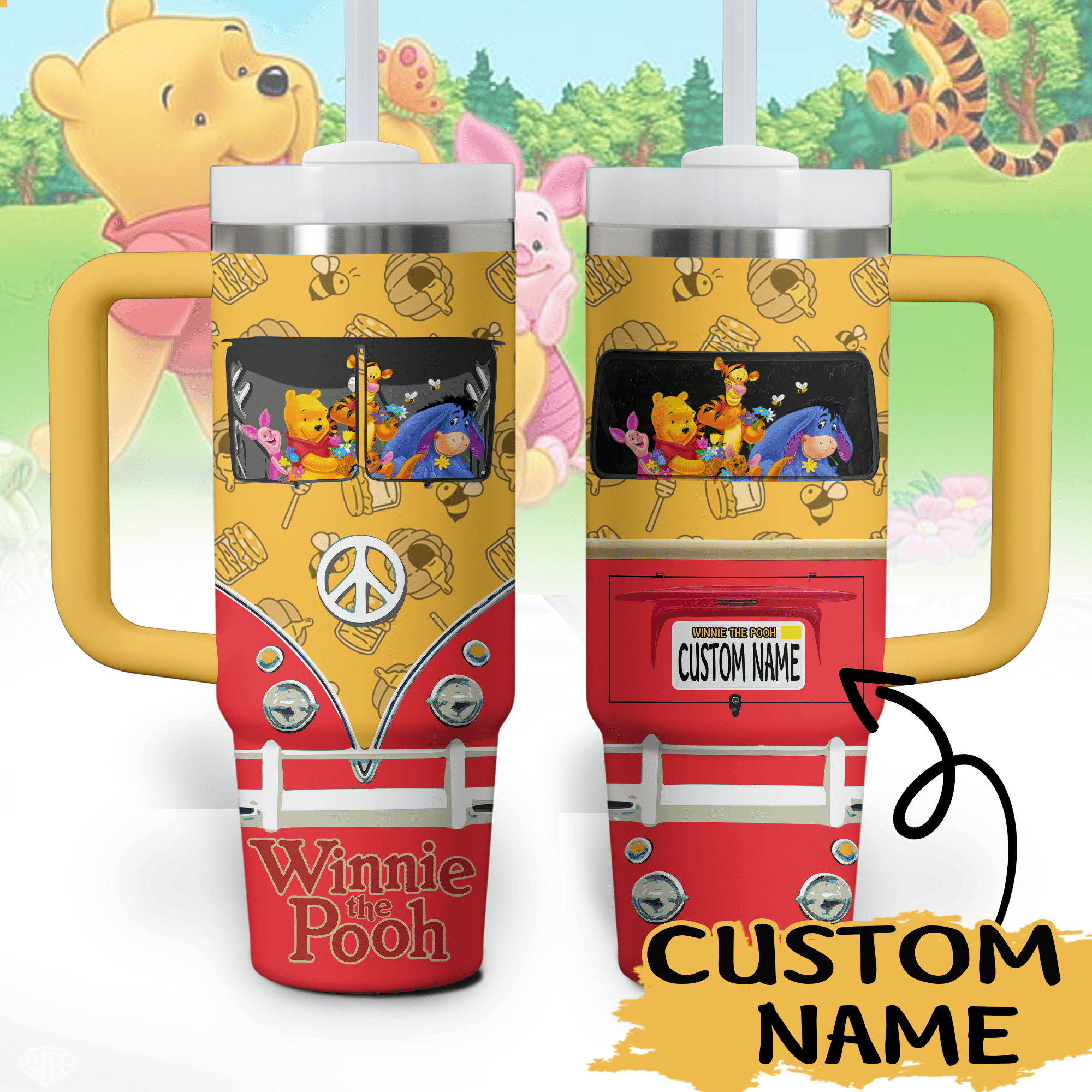 Winnie The Pooh Cartoon Custom Stanley Cup 40 oz Tumbler With Handle
