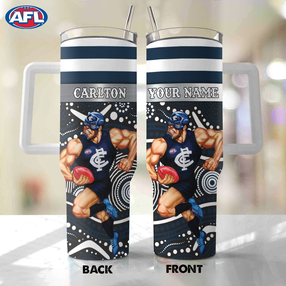 Afl Carlton Blues Mascot Custom Stanley Quencher 40Oz Stainless Steel Tumbler With Handle