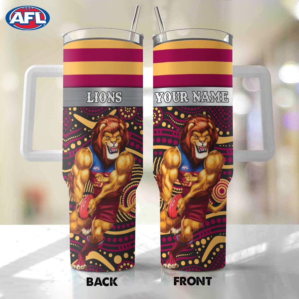 Afl Brisbane Lions Mascot Custom Stanley Quencher 40Oz Stainless Steel Tumbler With Handle