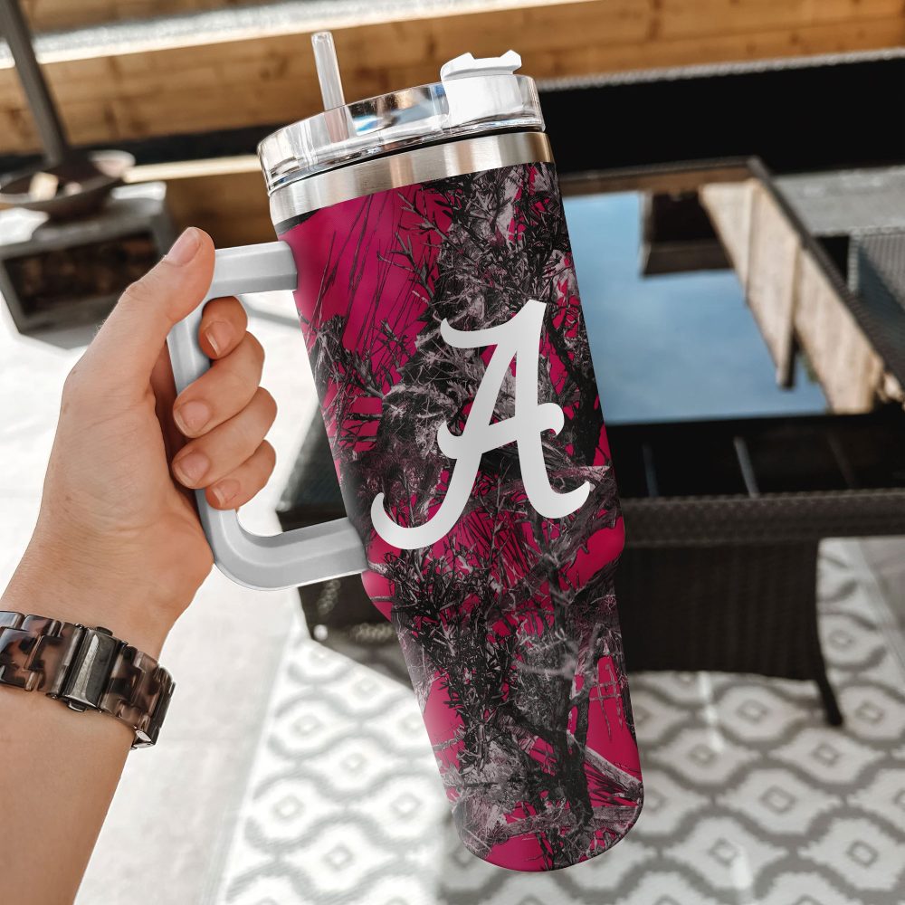 Alabama Crimson Tide Ncaa Hunting Custom Stanley Quencher 40Oz Stainless Steel Tumbler With Handle