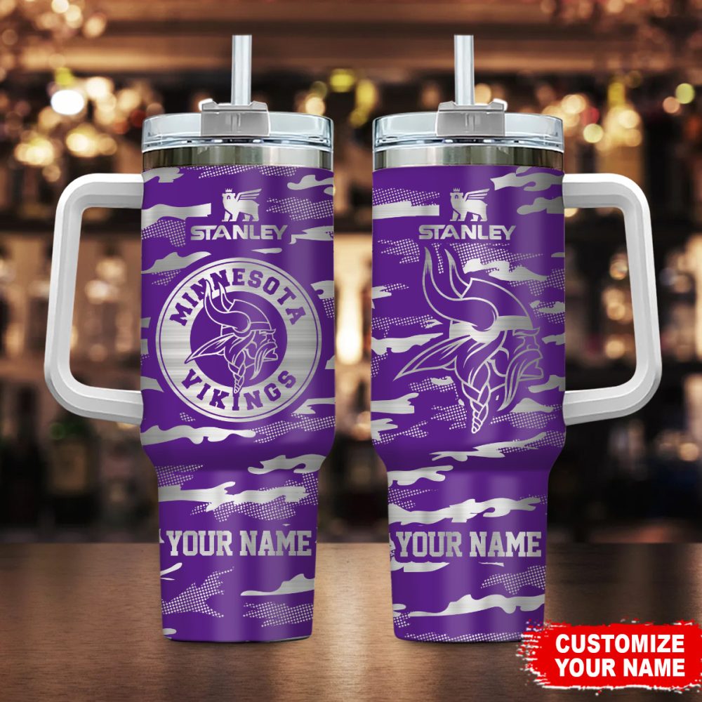 Minnesota Vikings Nfl Camo Pattern Custom Stanley Quencher 40Oz Stainless Steel Tumbler With Handle